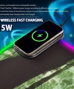 Package Including: 1 x RGB mouse pad for gaming, 1 x Fast Wireless charger (1.5m USB + Type-C cable), 1 x Instruction. Two Szies led mousepad to choose – S: 31.5 x 11.8in and M: 35.4 x 15.7in. BTW, As long as the wireless charging function of cell phone, watch, mouse and other products, can be charged with our wireless charging box.