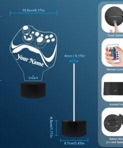 🎮【Remote Control+Timer+Dimmer+Smart Touch】Newly upgraded version gamepad night light can be set free from 15 minutes to 12 hours. The 3d lamp has 16 colors changing and 4 kinds of flashing, and you can adjust the light brightness to decorate Kids’ rooms, bedrooms, living rooms, etc, and not impact your sleep