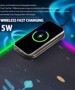 Package Including: 1 x RGB mouse pad for gaming, 1 x Fast Wireless charger (1.5m USB + Type-C cable), 1 x Instruction. Two Szies led mousepad to choose – S: 31.5 x 11.8in and M: 35.4 x 15.7in. BTW, As long as the wireless charging function of cell phone, watch, mouse and other products, can be charged with our wireless charging box.