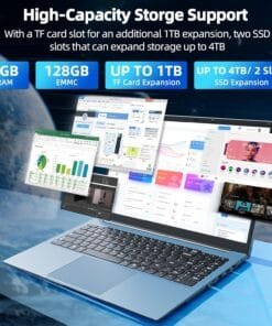 Capacity Storage: Naclud laptop features 4GB of high-bandwidth DDR4 RAM, 128GB EMMC, ensuring exceptional performance for multitasking and graphics-intensive applications. It features two SSD slots that can expand storage up to 2TB each, along with a TF card slot for an additional 1TB expansion, allowing for a total storage capacity of up to 5TB. Massive storage space for your files, applications, and multimedia content, providing fast and reliable data access