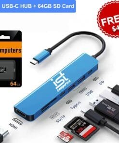 Ports and connectivity: 2x USB 3.2 Gen 1 Type-A, 2x USB 3.2 Gen 1 Type-C support display / power delivery, 3.5mm Combo Audio Jack, Micro SD card reader; Enjoy enhanced connectivity with the bundled IST Computers 7-in-1 Hub, featuring HDMI (4K@30Hz), USB-C 2.0, two USB 2.0 ports, Type-C Power Delivery, and an SD/TF card reader; Wi-Fi 6, 802.11ax 2×2 + Bluetooth 5.2.
