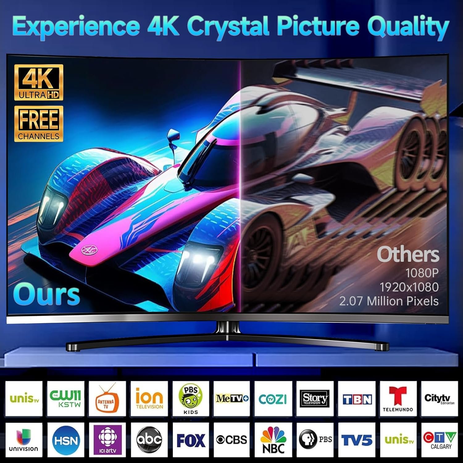 Built-in 2025 newest generation powerful signal booster, which brings you local news, weather, sitcom, kids and sports programs etc.