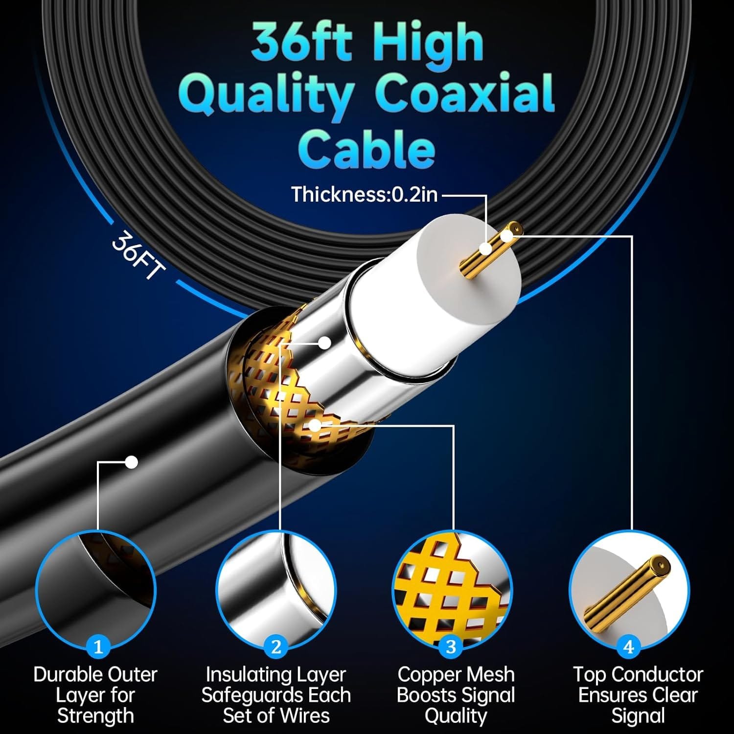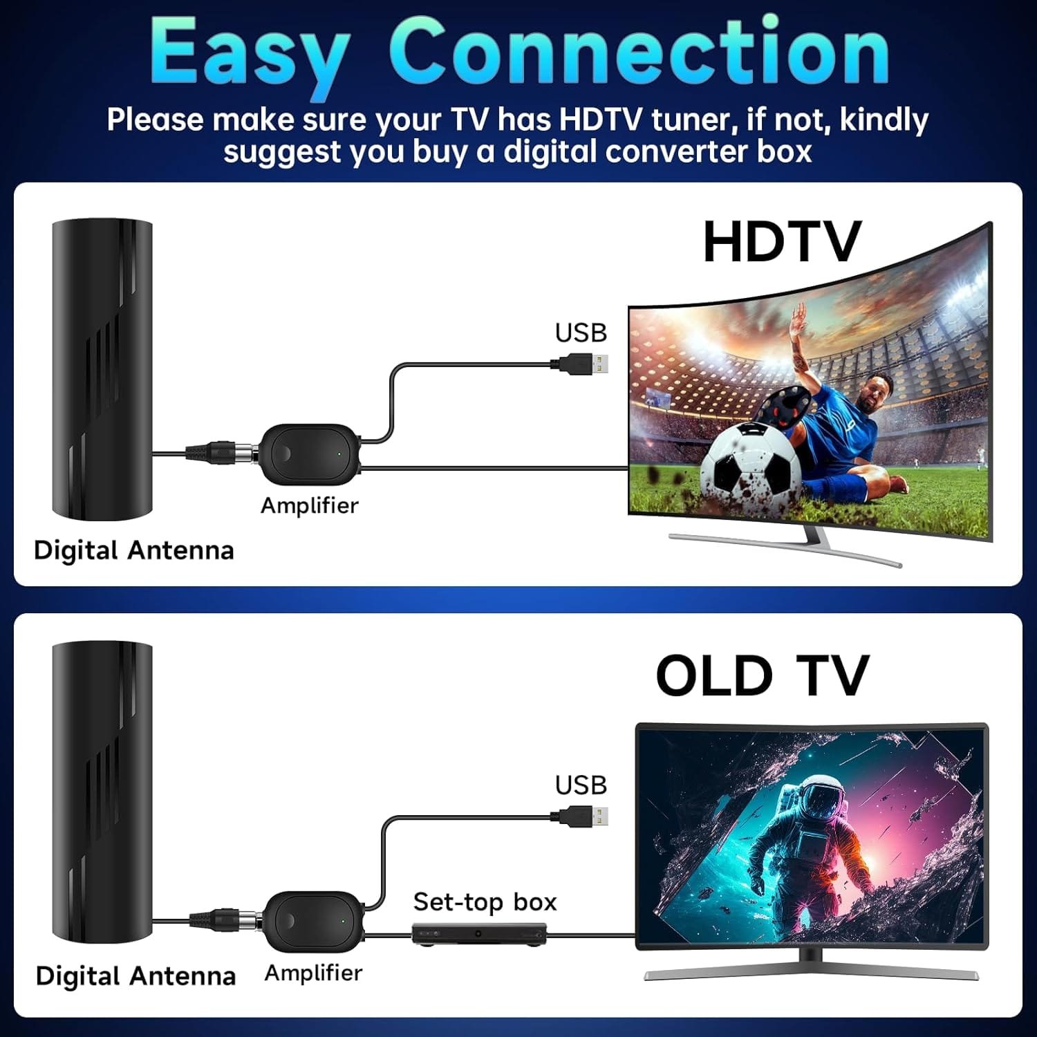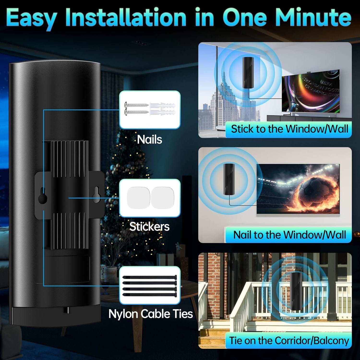 1200+ Miles Range TV Antenna-Digital Antenna for Smart TV Indoor with Amplifier and Signal Booster- HD Antenna for TV Indoor Outdoor for Local Channels-36ft Coax Cable – Support 8K 4K 1080p