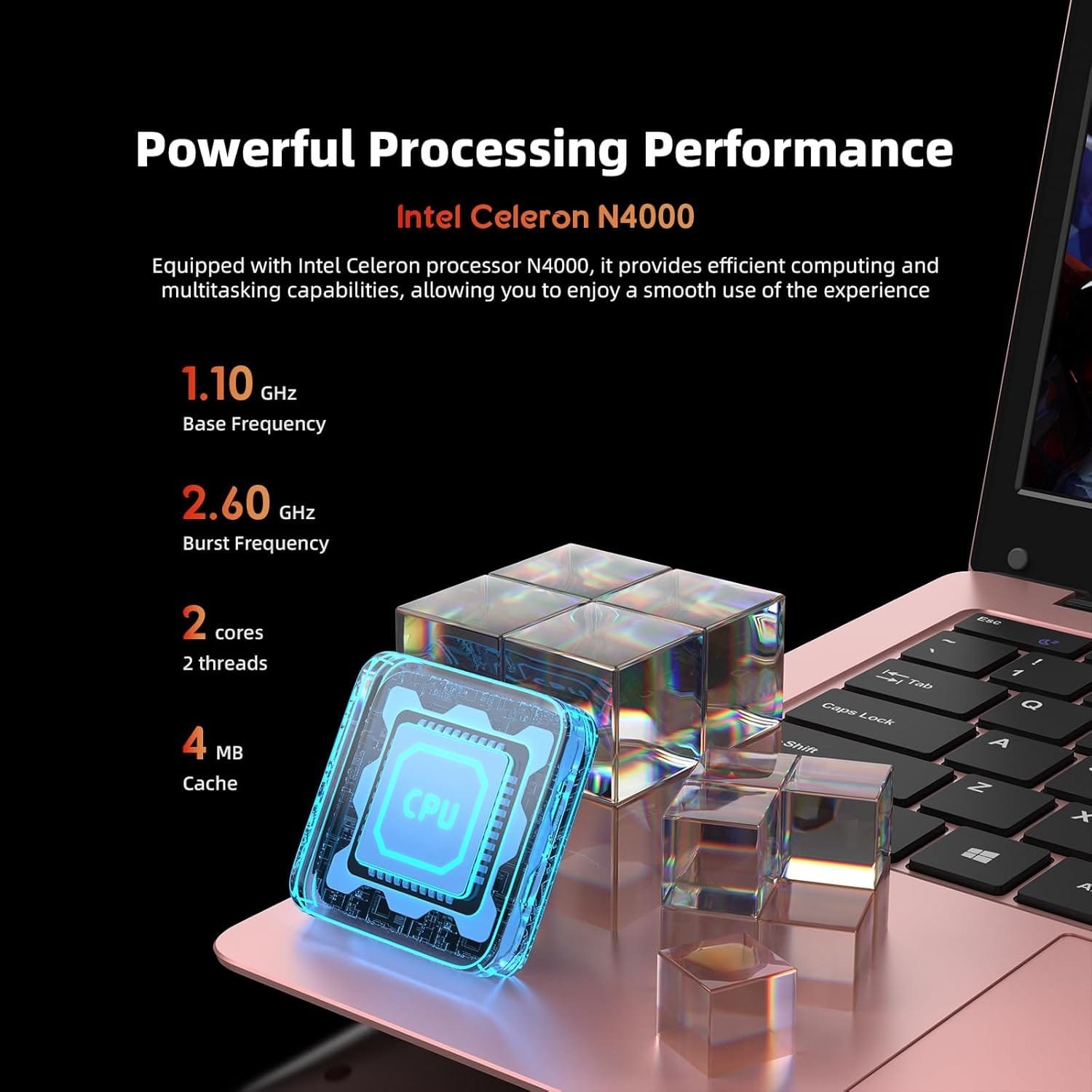 LIGHTNING FAST PROCESSING – Games, music, and binge watching are taken to new heights with Intel Celeron N4000 (2) processing power and Intel UHD Graphics 600 (3).