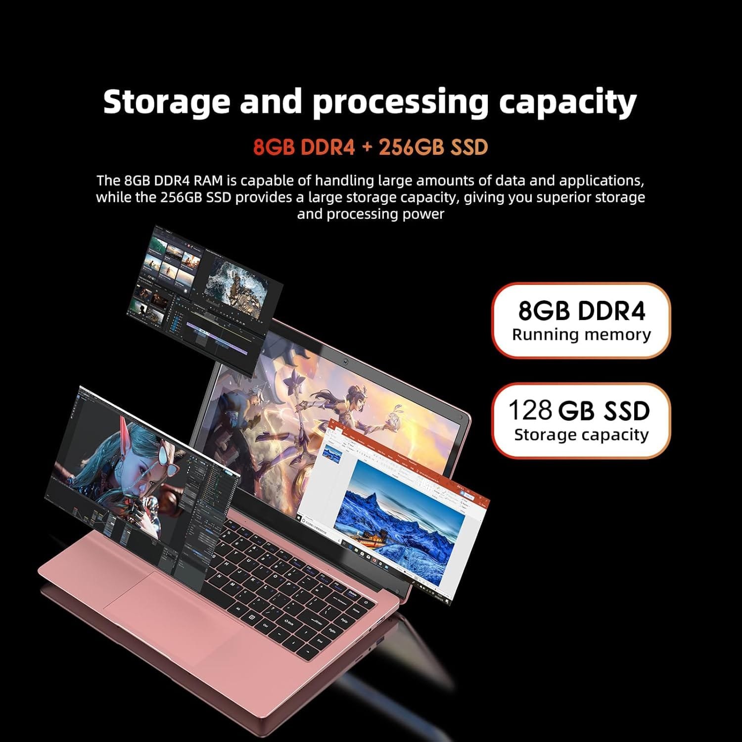 14.1″ Laptop Computer 8GB RAM DDR4 128GB SSD Storage, Laptops Z141 Celeron N4000 Processors, HD Screen Display Windows 11 for School Students Business, Pink Laptop