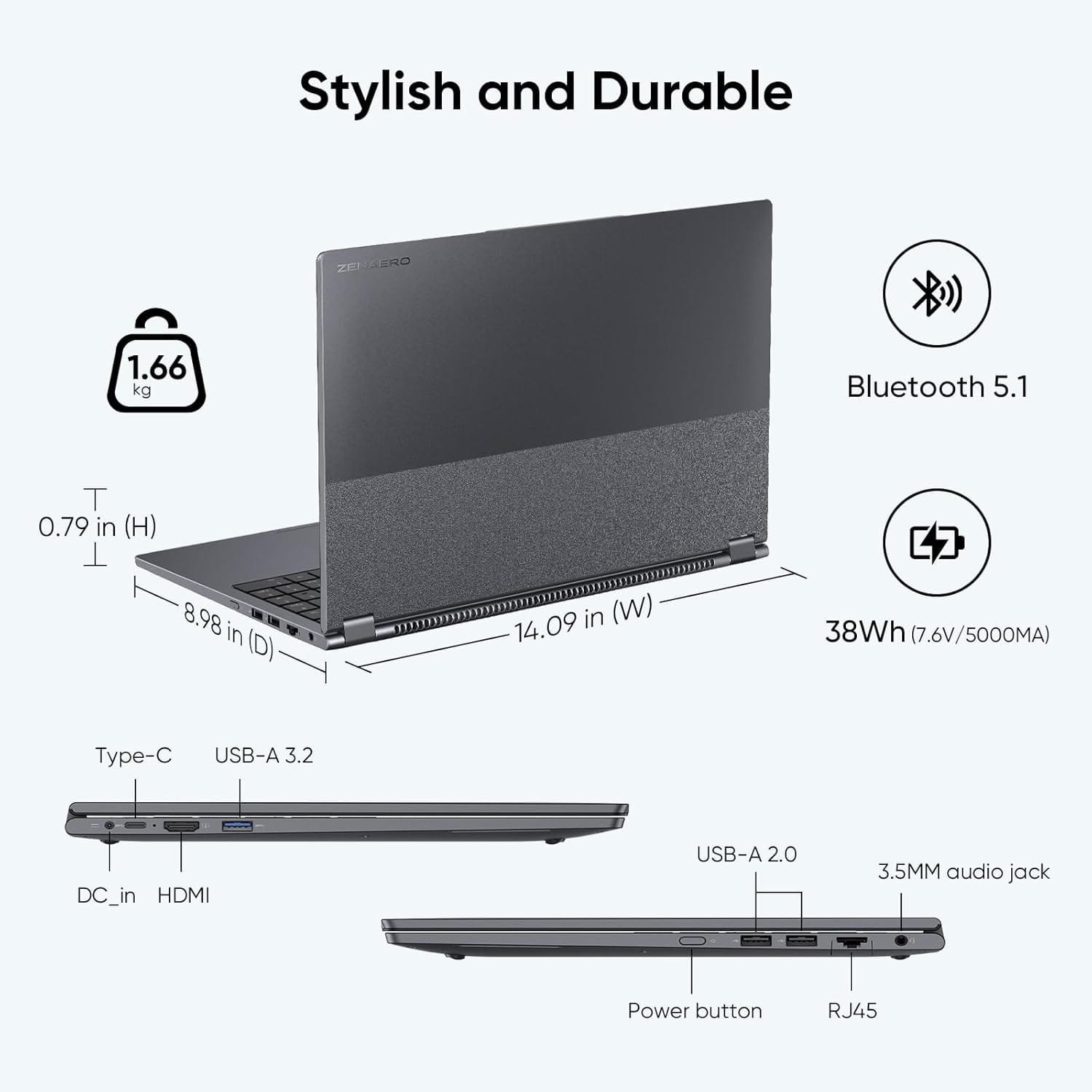 【Rich & Vibrant Visuals】The ZENAERO laptop boasts a responsive 15.6-inch touch display with a resolution of 1920 x 1080 pixels and a 16:9 aspect ratio, providing clear visuals and vibrant colors for an immersive experience. Ideal for video streaming, photo editing, gaming, and productivity tasks.