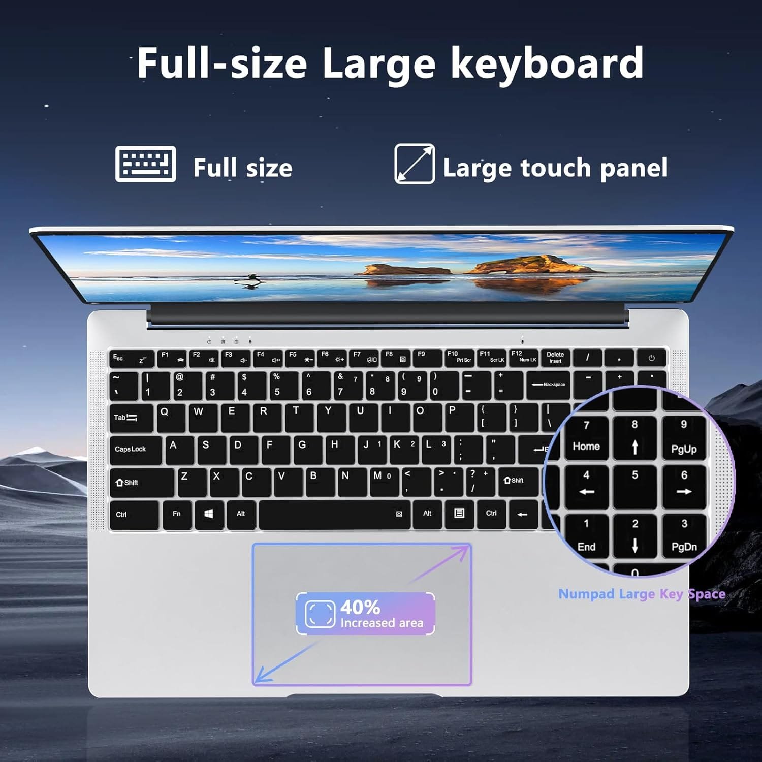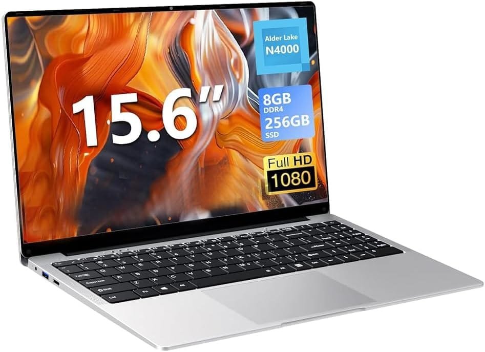15.6 Inch Full HD Laptops,Notebook Computer N4000 Processor Up 2.6GHZ,Student Laptop 8 GB RAM 256GB SSD,1920×1080 Display Laptop Computer,180 Angle Opening and Closing,WiF5,Mini HDMI,Numeric Keypad