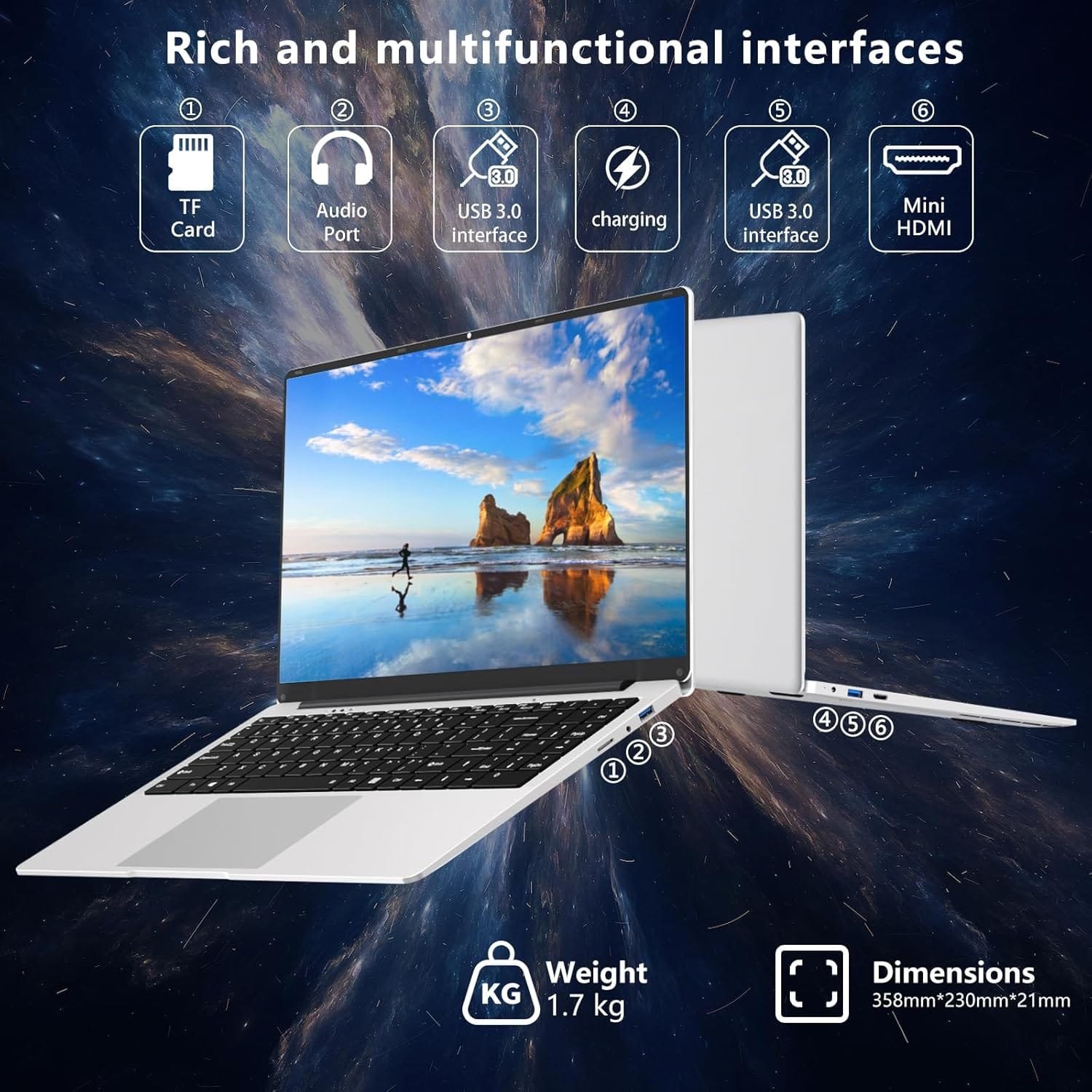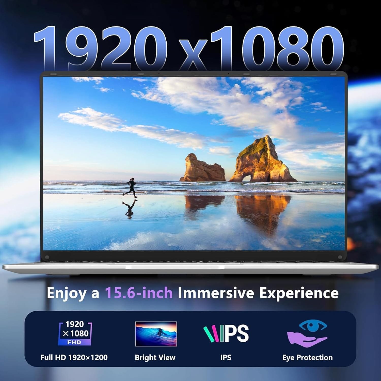 COMFORTABLE VISUAL EXPERIENCE:The 15.6-inch laptop uses a 1920×1080 resolution to ensure the clarity of text and images.Even if you stare at the screen for a long time, your eyes will not feel excessive discomfort.16:9 ratio and screen ratio make the color transition natural and smooth, bringing a comfortable visual enjoyment to your eyes.