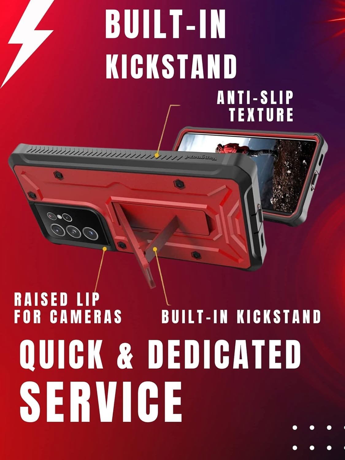 ✅ Reinforced corners and raised lips to protect the screen and camera, plus a built-in kickstand