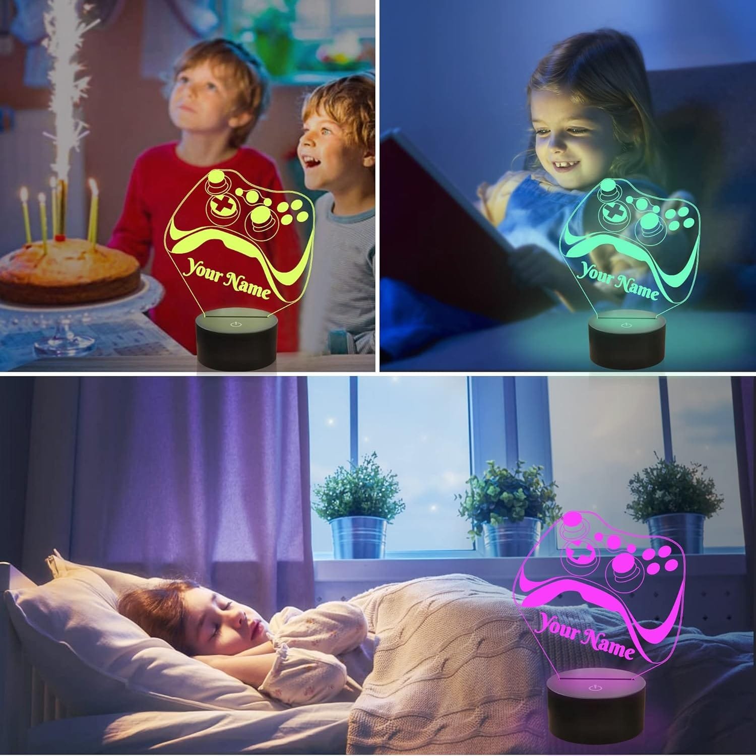 🎁【Personalized Gift】Customized exclusive memories for you. The gamepad hologram lamp with special name and number signs can add attraction to the dark corner of the house during nighttime. It’s a perfect Birthday, Christmas, party, Thanksgiving day, graduation ceremony, holiday gift toy for boys and men. Used in children’s bedroom, baby bathroom, living room, hallway, study, office, sports meeting decoration