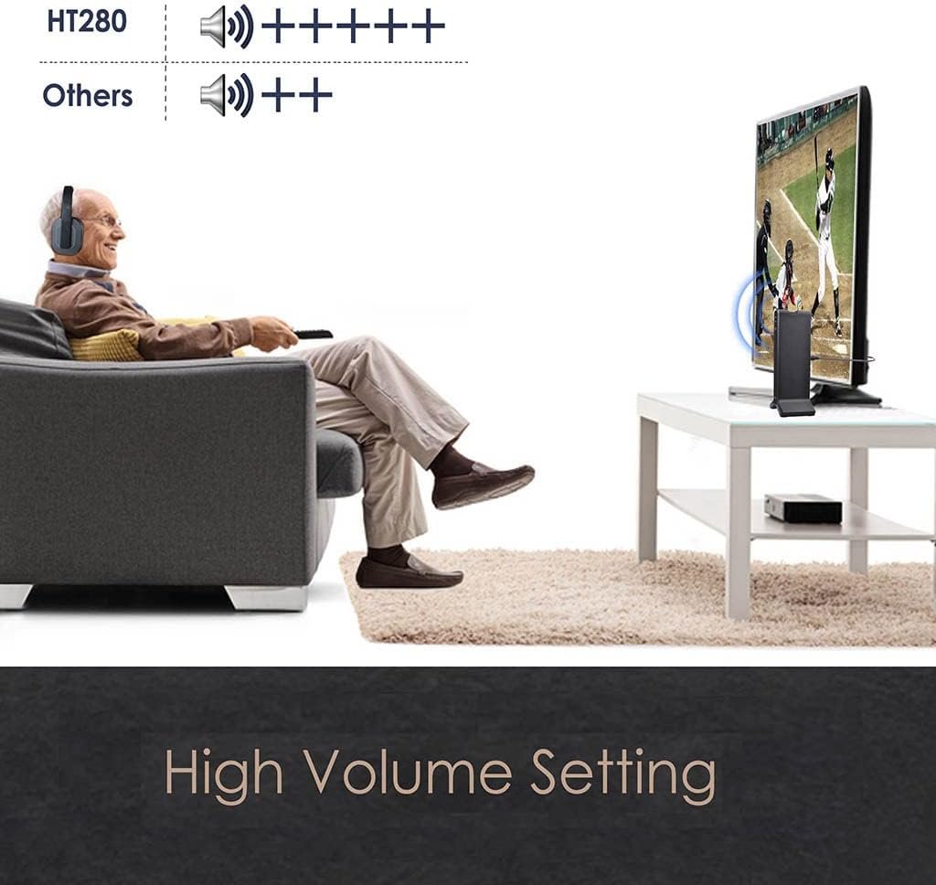 【PLUG & PLAY】 Not a tech junkie? No problem! With our HT280 wireless headphones, there is no need to worry about pairing them with your device. Simply turn on both devices and they will auto connect. Our headset also comes with an all-in-one charging dock and transmitter for a user friendly audio experience.