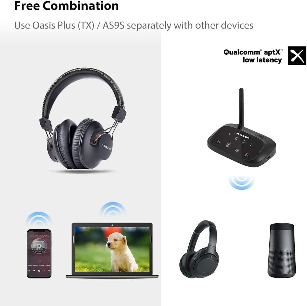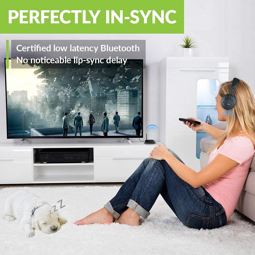 [...]I’m now on my second Avantree product for TV watching/listening. I’ve used their Audition Pro for many (many!) years and it has served me exceptionally well. But, since the headband is completely worn out and I’ve gone through a few sets of ear pads, I decided it was time for a replacement. Rather than try for another Audition Pro (I don’t think they even still make it) I opted for the HT5009 headset/transmitter package. Very easy to set up the transmitter (I’m using the optical connection with pass through to my sound bar), and the headphones pair quickly and reliably. The headset fits my head and ears as well as the old Audition Pro – very light and comfortable. Sound quality is excellent and I can set the equalization for voice or music listening with a toggle on the headset. The transmitter will support two headphones and will even pair with my old Audition Pro but it isn’t a good solution as the voice/video are not perfectly in sync with that old headset. I guess if you want to use two headphones with the transmitter then stick with the headphone model they recommend. One caveat, if you integrate your sound bar and TV via HDMI then the transmitter may not be the best choice as it has to connect via headphone cable or optical connection. And your TV must be set to use PCM output. This is OK for me but might not be for you. All in all, this is a really great solution for TV listening for long after your partner heads off to bed or if you have trouble hearing the dialog on some TV shows. I’ve not had to use Avantree tech support but there are all sorts of ways to contact them if needed and I feel they will be standing by for my call or email. Highly recommended.UPDATE: I found out that, depending on your TV and sound bar, you can connect your TV to the sound bar via HDMI (allows the TV to turn on/off the sound bar, adjust volume, etc.) and still use the TV’s optical output to drive the Avantree headphone transmitter. Still have to set the sound output to PCM (and not Dolby, etc.) but the sound quality is still great on my sound bar. And, since the Avantree transmitter has an optical splitter built in, I now have an optical cable running from the Avantree transmitter to my old low latency bluetooth transmitter that connects to my old Avantree Audition Pro headset. Voila! Both new and old Avantree headsets now connect perfectly so I’m set up for two listeners at once. Even more recommended now.