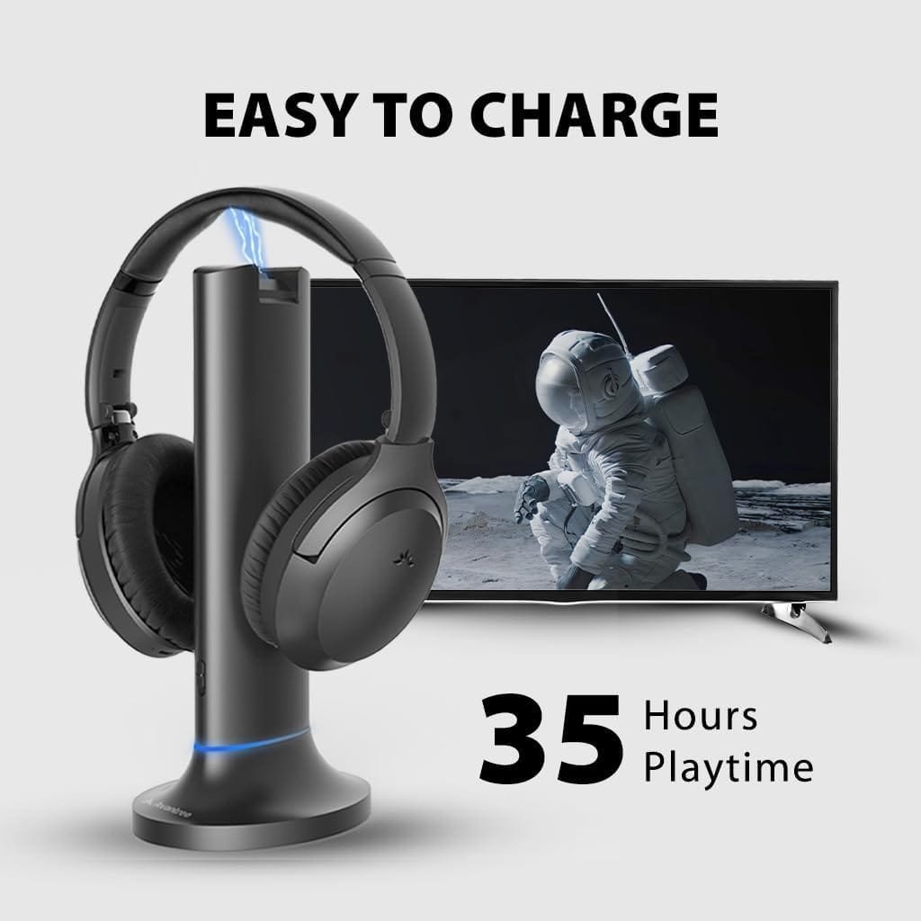 Customers find the headphones have excellent sound quality and enough volume for them. They are easy to set up and use, with simple charging and no long-winded manuals. The headphones work great with surround sound systems and provide a comfortable fit. Many customers are satisfied with the hearing aid. However, some customers disagree on build quality, value for money, and connectivity.