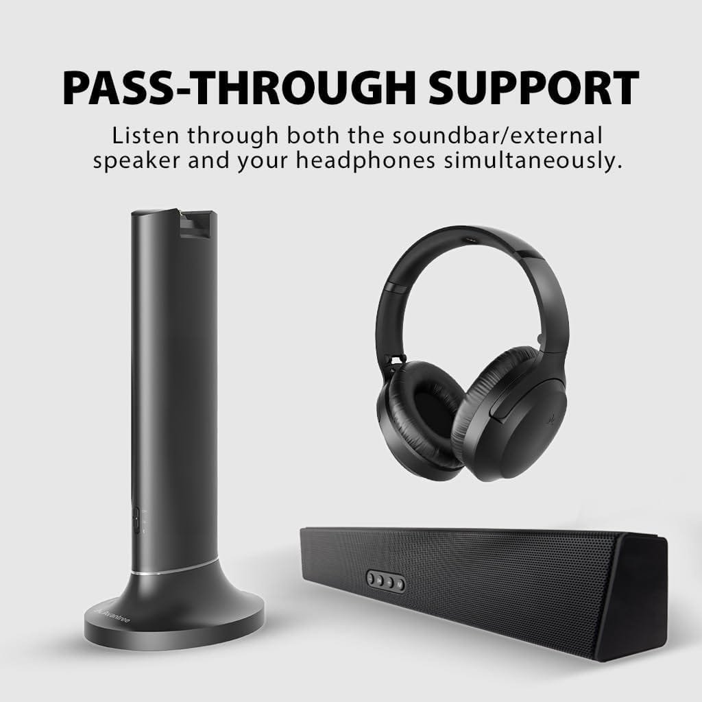 Avantree Opera – Wireless Headphones for TV Watching with Clear Dialogue, Compatible with TVs Equipped with Optical or AUX Audio Output Ports, Passthrough, Enhanced Volume & Comfortable for Seniors