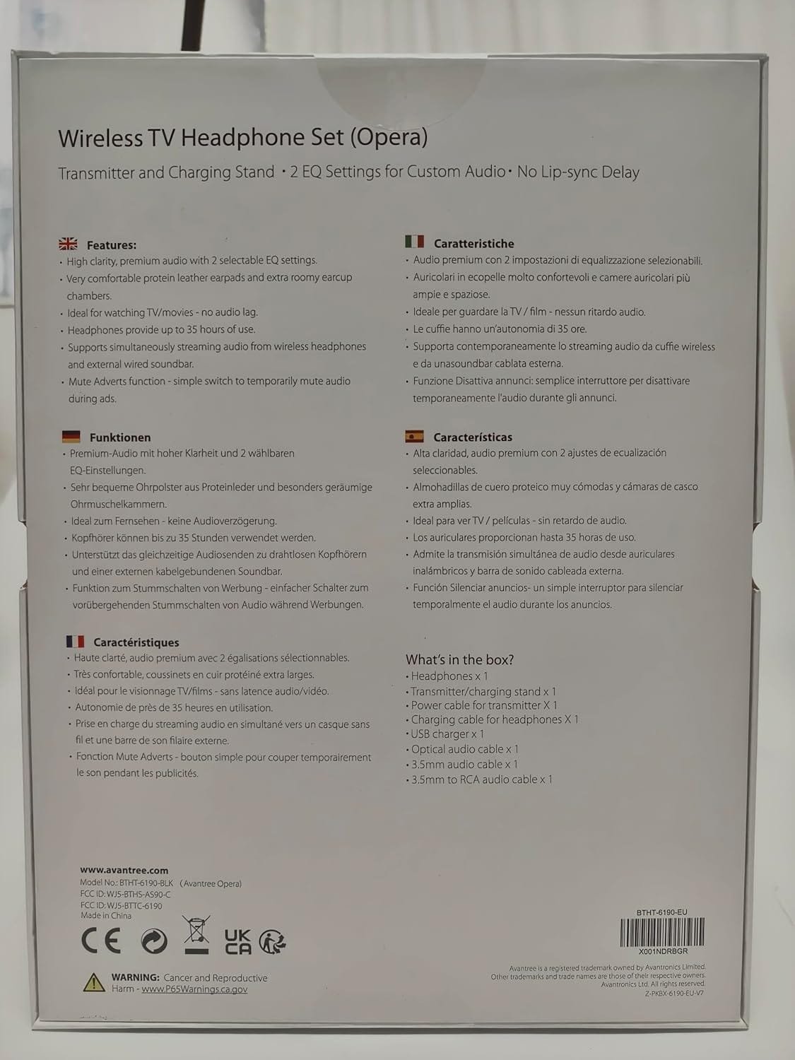 [...]My wife loves to watch TV AFTER it’s time for us to go to bed. I was struggling for months listening to her watching TV in our bedroom until stumbling across this concept. Wireless headphones that plug right into the TV set and require zero effort or pairing or fighting to keep them working. Looked at many similar items before picking this brand, and I feel I made the right move. 26″ Samsung Flat screen LED TV about 5 years old. Bought this set of headphones to try. Right from the packaging I was impressed. Strongly built, brightly colored box that we kept for future use. Headphones sit on the Charging base stand so no wires and chargers sitting around looking junky. Plug the headphones into a USB cube (more on that later) and plug the cube into the receptacle. Already charged right from the store. Comes with a few options to connect to the TV. We used the OPTIC cable just because it’s a clean and more direct source. Plug the Optic cable into the back of the TV, and into the charging Stand. Lift the headphones off the stand and they immediately say something like “welcome to Avantree” then in a few seconds they say “Connected” as they connect with the charging base. Walk anywhere in the room and hear the TV thru the headphones. Then use your TV remote to put the volume of the TV on ZERO. Adjust the volume of the headphones with the volume knob on the headphones and you are now listening to the TV with the headphones only. My wife also claims they are very comfortable and she has watched TV for a few hours at a time without discomfort. I have used many types of headphones in my life, and it’s not easy to find a pair that is comfortable for long periods of time. Best part, let’s say I suddenly decide to watch TV or a certain part of a show with her ? She continues wearing the headphones at her volume level, and I just use the Remote to turn the volume up on the TV speakers. Turn it back to ZERO when I’m done and she continues on watching and hearing TV at her set level. Had for about two month now and very pleased. The USB Cube I mentioned ? The OPERA headphones include a FREE USB cube with your purchase. Now they do not include them in the box, which is a smart idea on their part. They require you to go to their website and REGISTER the headphones. Once you register the headphones, you double the warranty period AND they then offer you a FREE high quality USB CUBE with their brand name on it. My USB cube arrived 4 days after I ordered it for FREE with FREE postage. Seriously, it’s FREE – no gimmicks. I have not gotten a single email or offer or advertisement from Avantree in the last 2 months since I registered. I actually had trouble locating where the FREE USB cube was listed, and late at night I used their CHAT which was popped up on the screen ready to go. Immediately a friendly person came on, thanked me for registering and the purchase and linked me to the correct spot. Never once has it disconnected or not worked as soon as they are picked up from the charging stand. I never give a review unless I feel very strongly about a product. I highly recommend these and I hope you have the good luck I did.