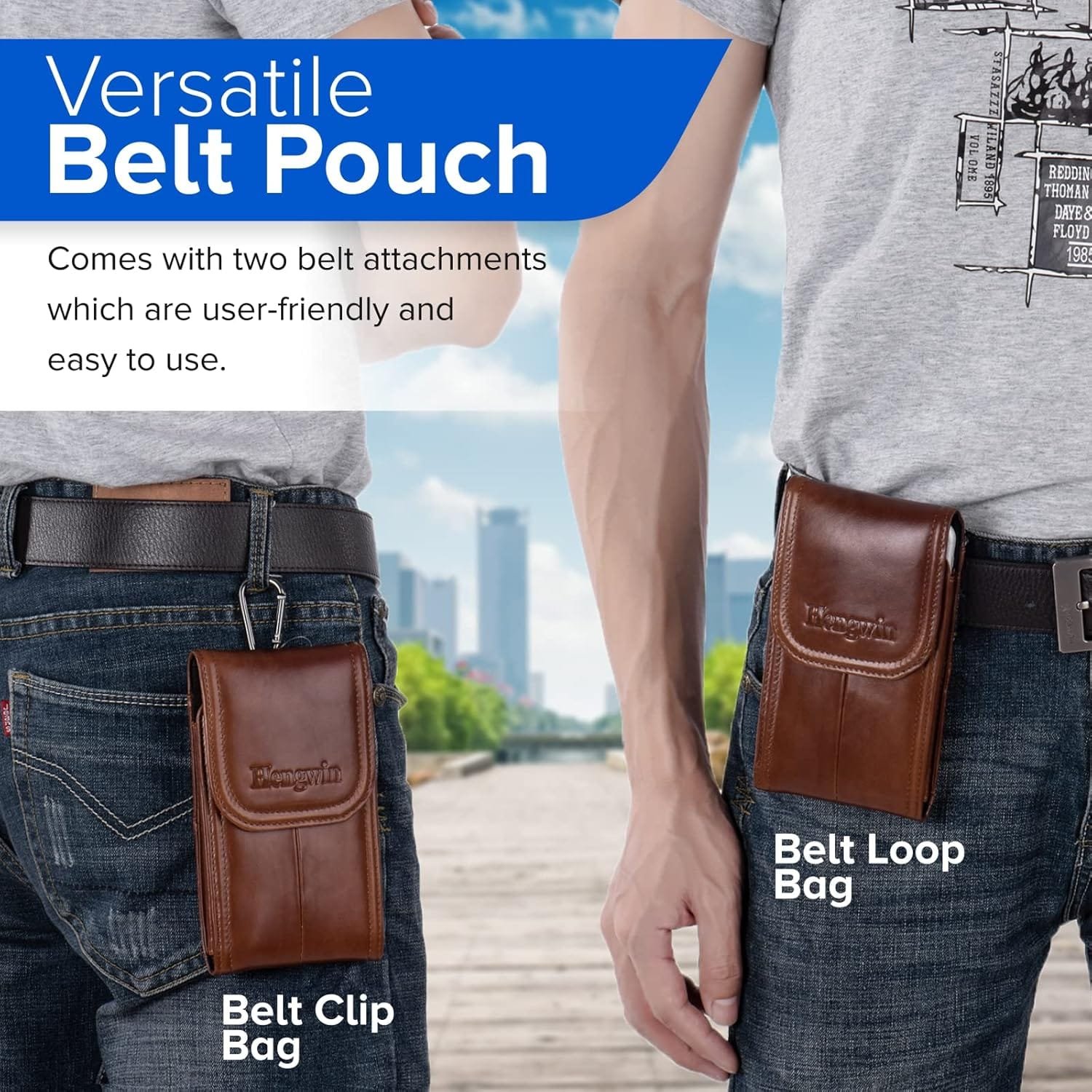 Belt Clip Holster Pouch Hengwin Genuine Leather Phone Case Holster with Magnetic Closure Belt Loop Pouch Bag Fits for iPhone 14 Pro Max 13 Pro Max 12 Pro Max Samsung Galaxy S24+ A54 A53 A15 (Brown)