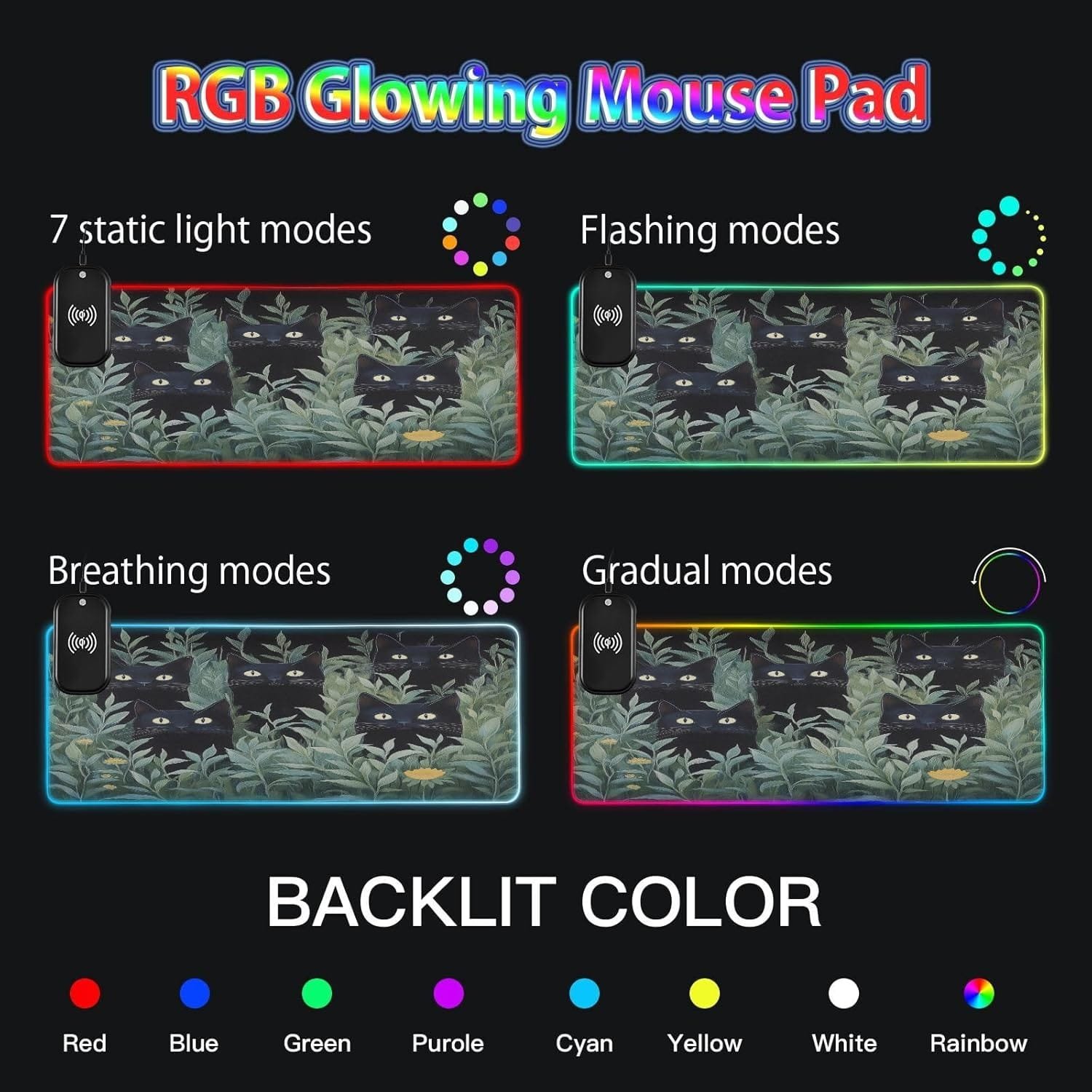 Be the first to review “Black Cat Flower Plants Gaming Mouse Pad Led Mousepads RGB Backlit with 14 Lighting Modes, Non Slip Base Soft Computer Keyboard Mat for Gaming PC Laptop Desk, M”