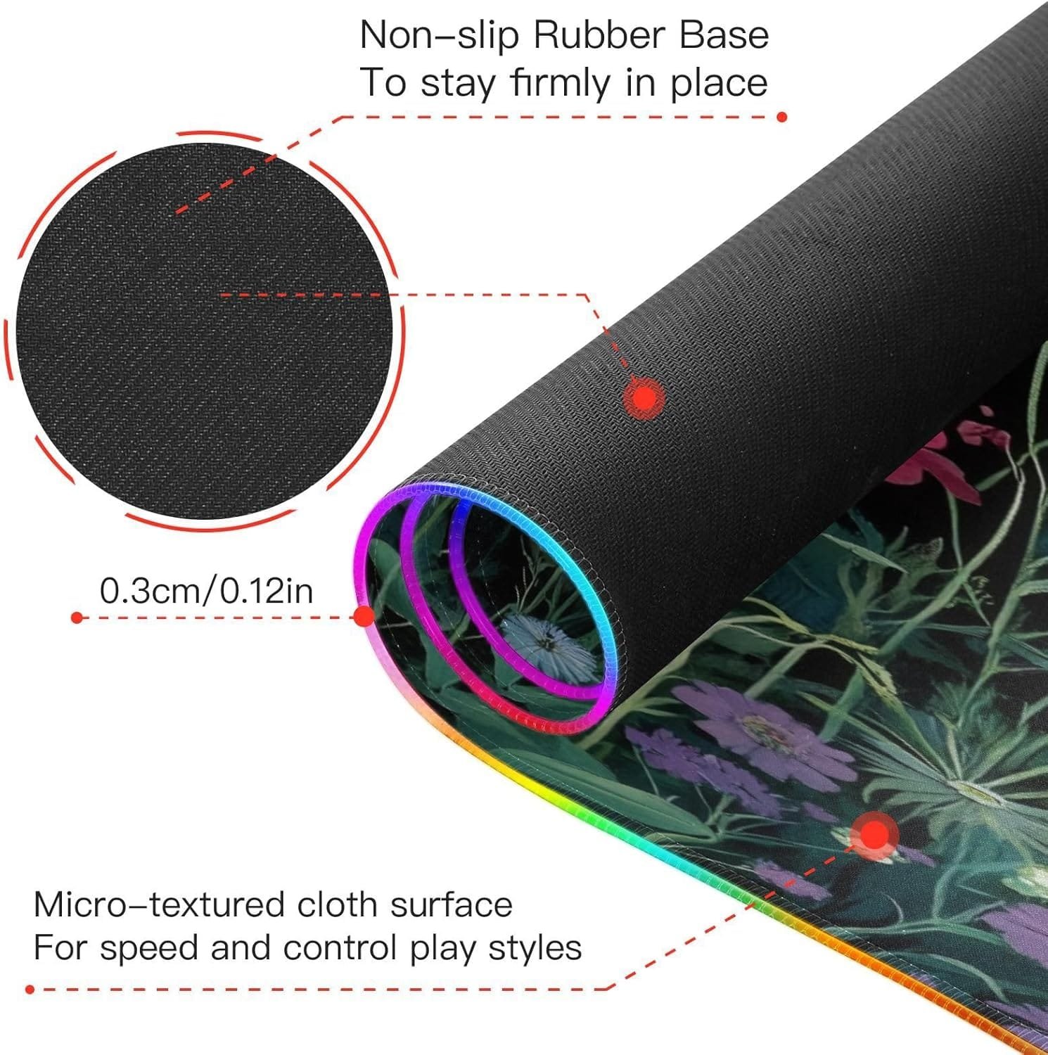 Non-slip Rubber Base: The RGB lighting do not effect interfering with your gaming experience. The mouse pad for gaming features a high-quality non-slip rubber back, ensuring it stays stable during the most intense competitions and extended gaming sessions.