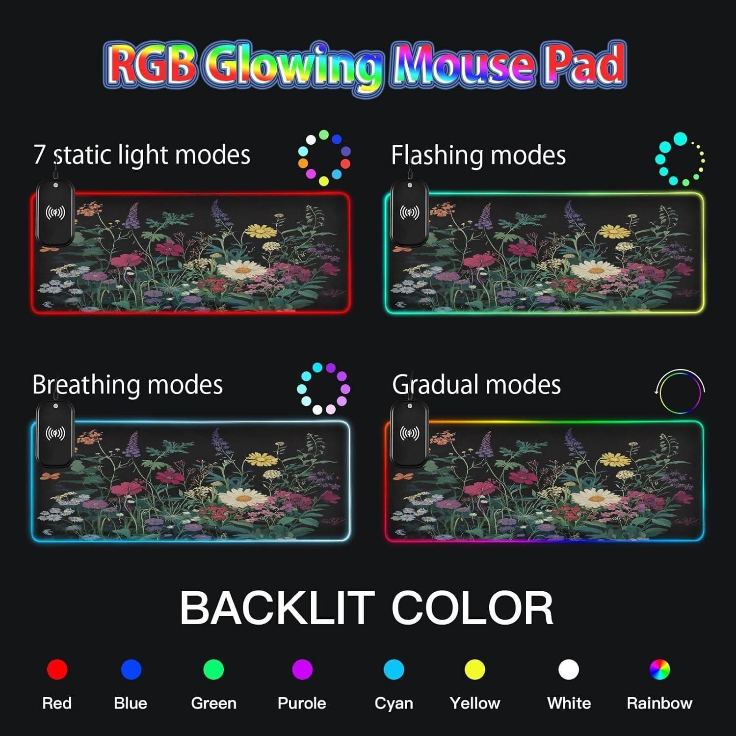 14 LED Lighting Modes: The real highlight of this RGB mouse pad is its 14 lighting modes effect settings. You can choose from different lighting modes, such as static color, breathing mode, and flashing mode. Additionally, you can adjust the brightness and saturation to perfectly match it with your computer system and room ambiance.