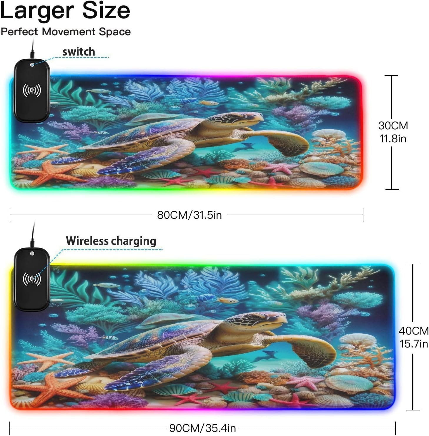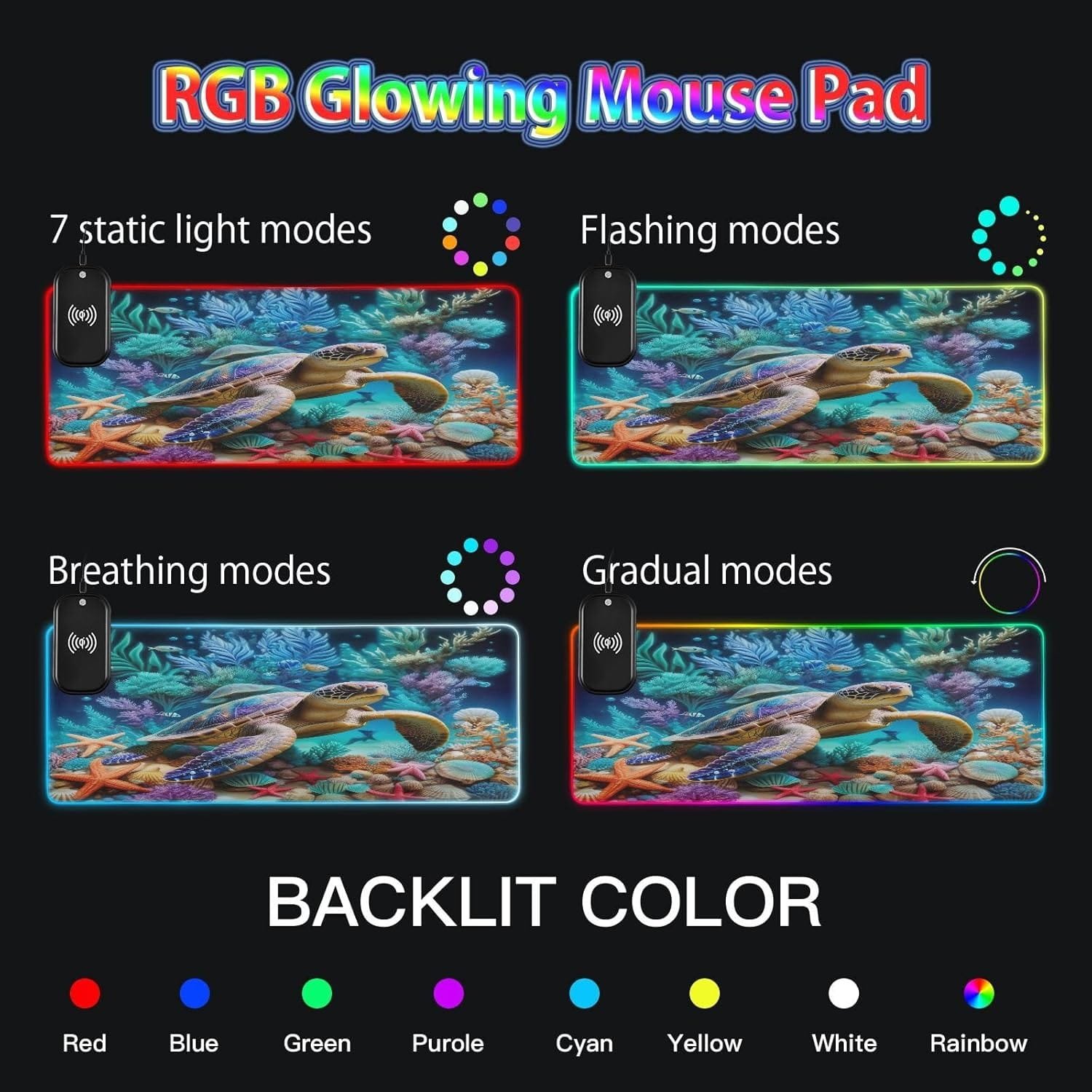 Blue Sea Turtle Gaming Mouse Pad Led Mousepads RGB Backlit with 14 Lighting Modes, Non Slip Base Soft Computer Keyboard Mat for Gaming PC Laptop Desk, S
