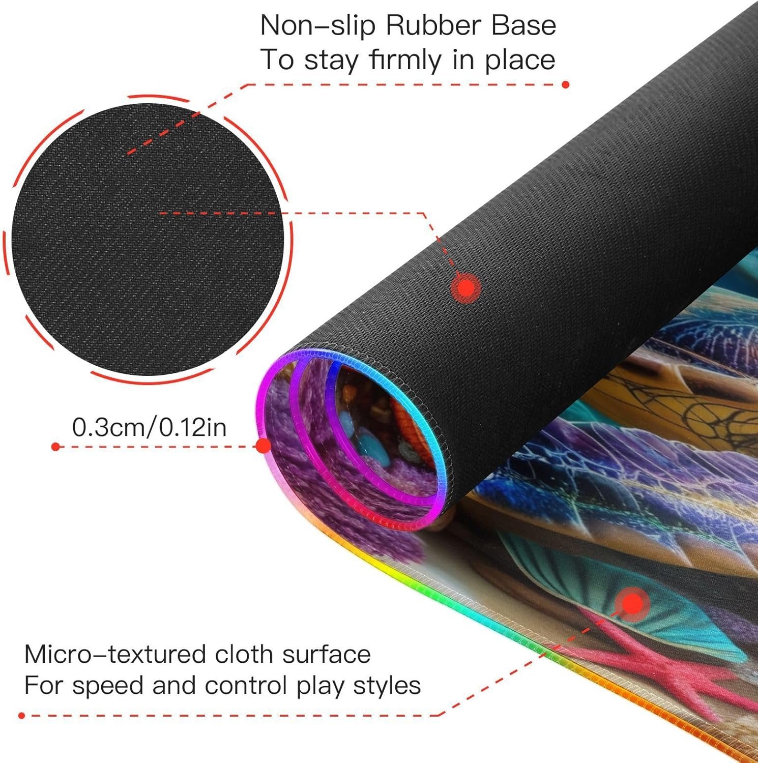 14 LED Lighting Modes: The real highlight of this RGB mouse pad is its 14 lighting modes effect settings. You can choose from different lighting modes, such as static color, breathing mode, and flashing mode. Additionally, you can adjust the brightness and saturation to perfectly match it with your computer system and room ambiance.