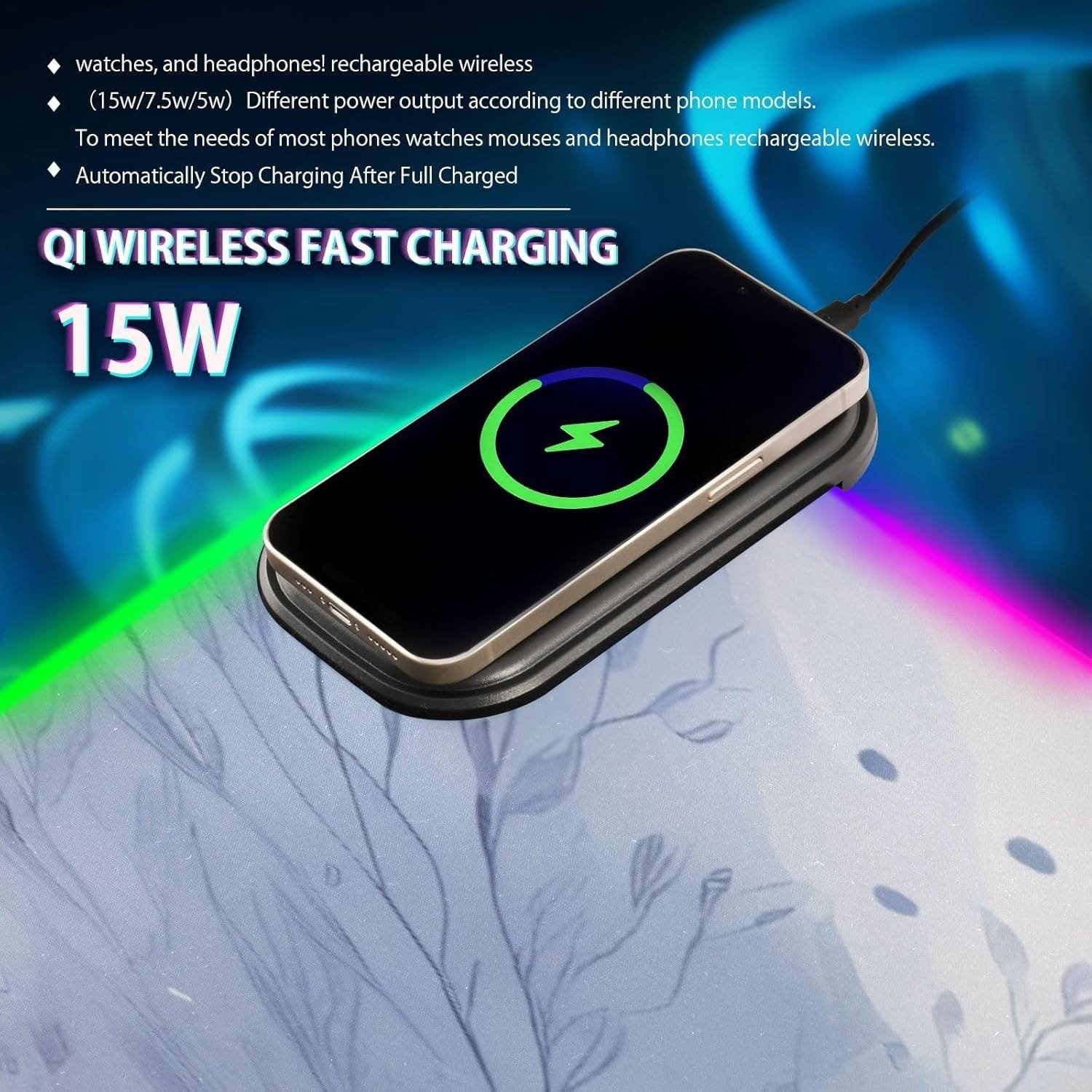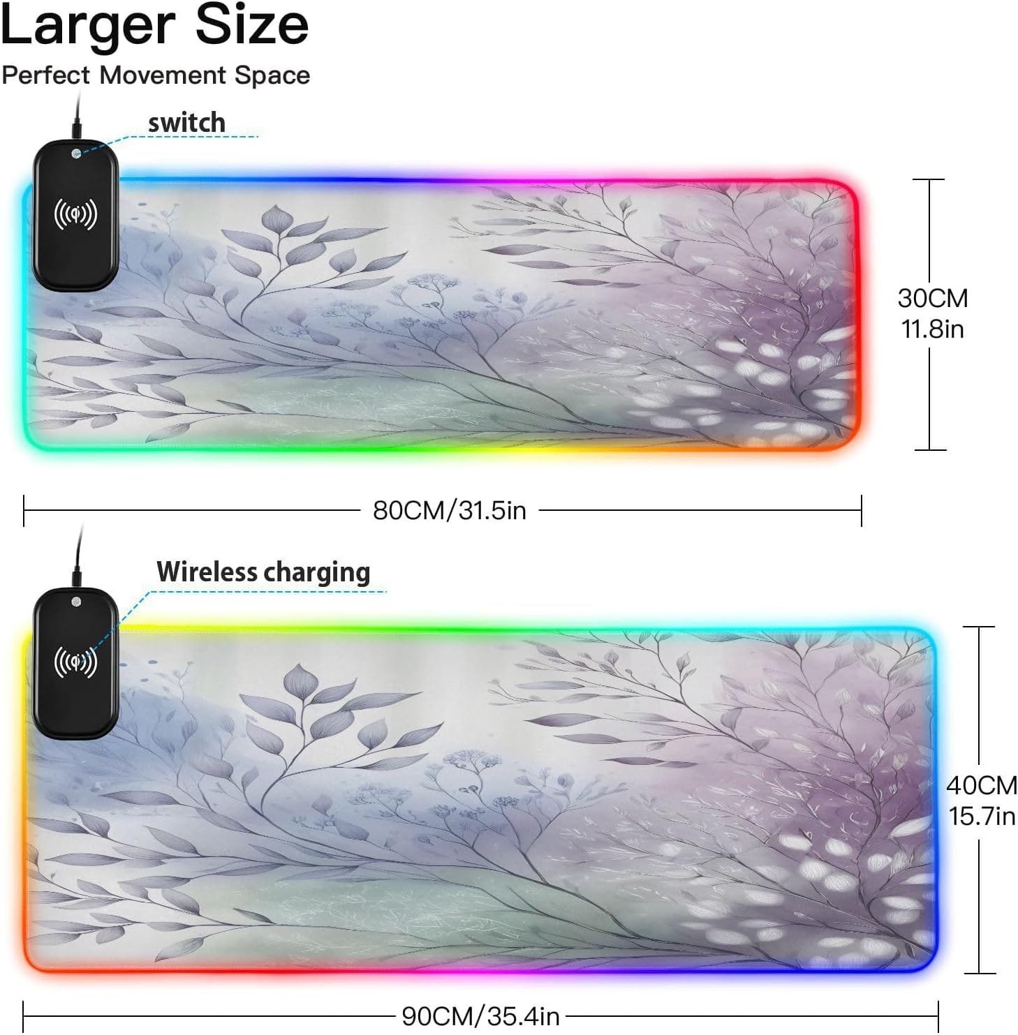 Package Including: 1 x RGB mouse pad for gaming, 1 x Fast Wireless charger (1.5m USB + Type-C cable), 1 x Instruction. Two Szies led mousepad to choose – S: 31.5 x 11.8in and M: 35.4 x 15.7in. BTW, As long as the wireless charging function of cell phone, watch, mouse and other products, can be charged with our wireless charging box.
