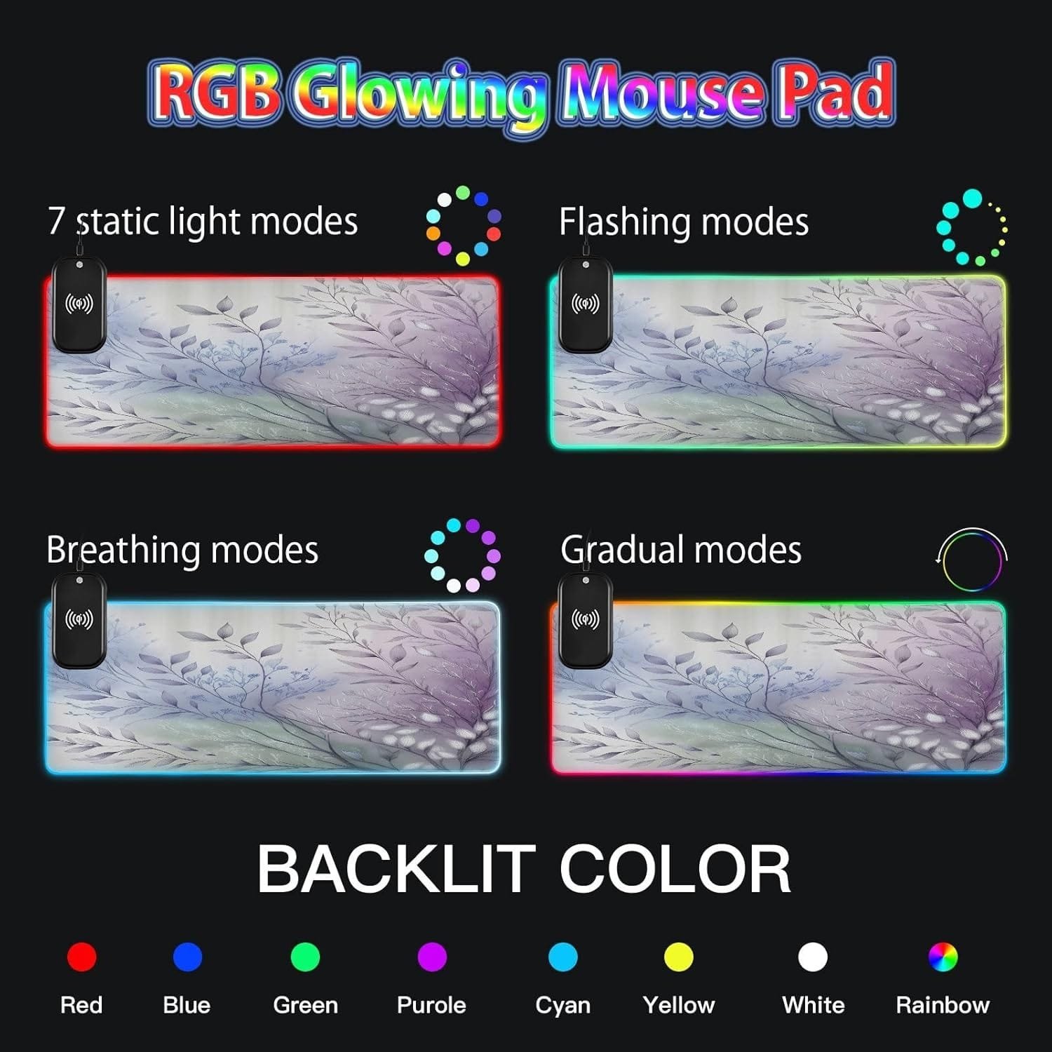14 LED Lighting Modes: The real highlight of this RGB mouse pad is its 14 lighting modes effect settings. You can choose from different lighting modes, such as static color, breathing mode, and flashing mode. Additionally, you can adjust the brightness and saturation to perfectly match it with your computer system and room ambiance.