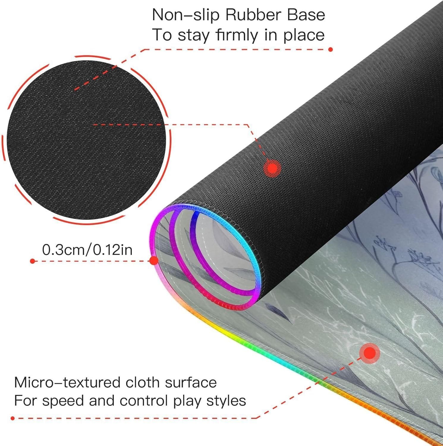 Non-slip Rubber Base: The RGB lighting do not effect interfering with your gaming experience. The mouse pad for gaming features a high-quality non-slip rubber back, ensuring it stays stable during the most intense competitions and extended gaming sessions.