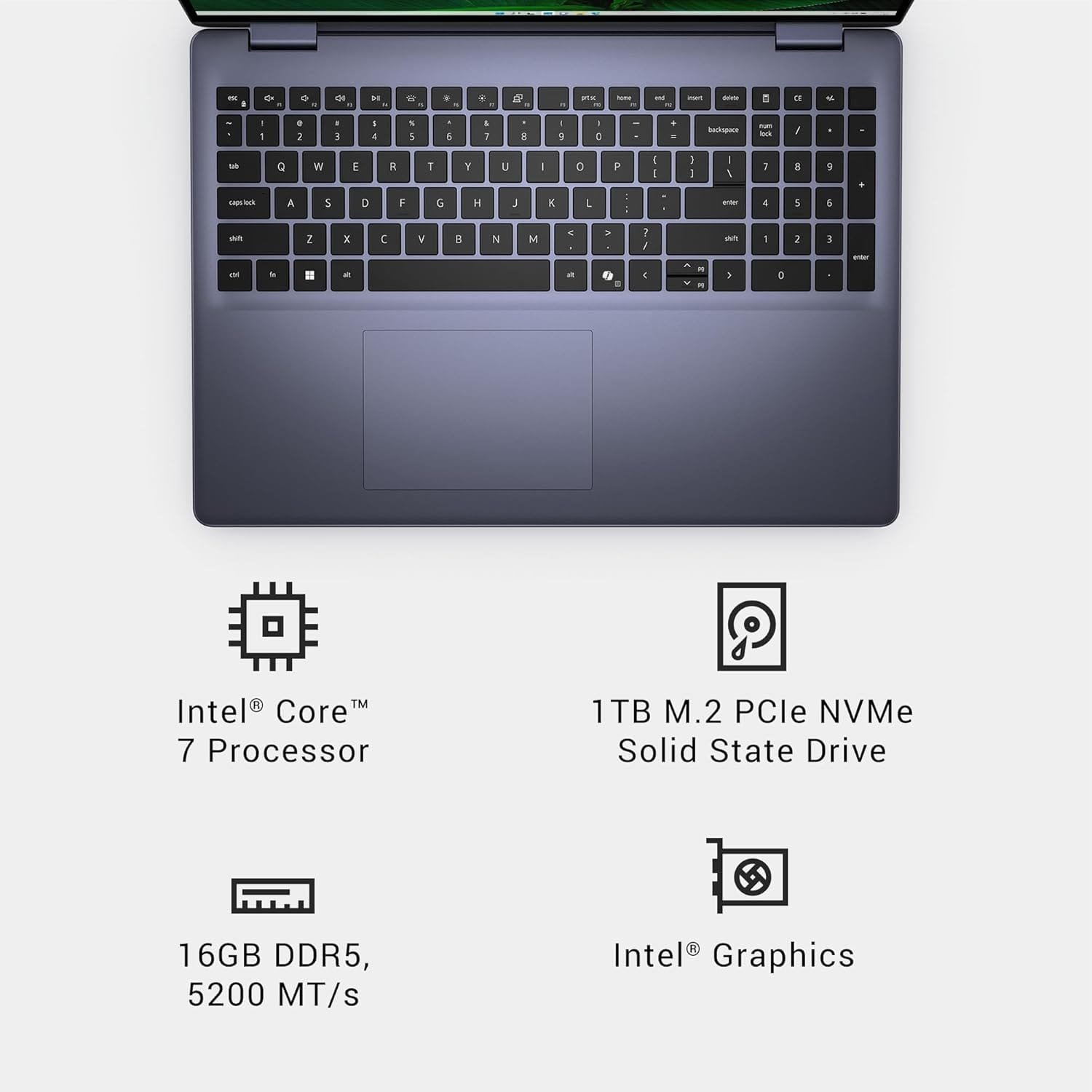Dell Inspiron 5640 Laptop – 16.0-inch 16:10 FHD+ (1920 x 1200) Display, Intel Core 7-150U Processor, 16GB DDR5 RAM, 1TB SSD, Intel Graphics, Windows 11 Pro, Onsite & Migrate Service – Midnight Blue
