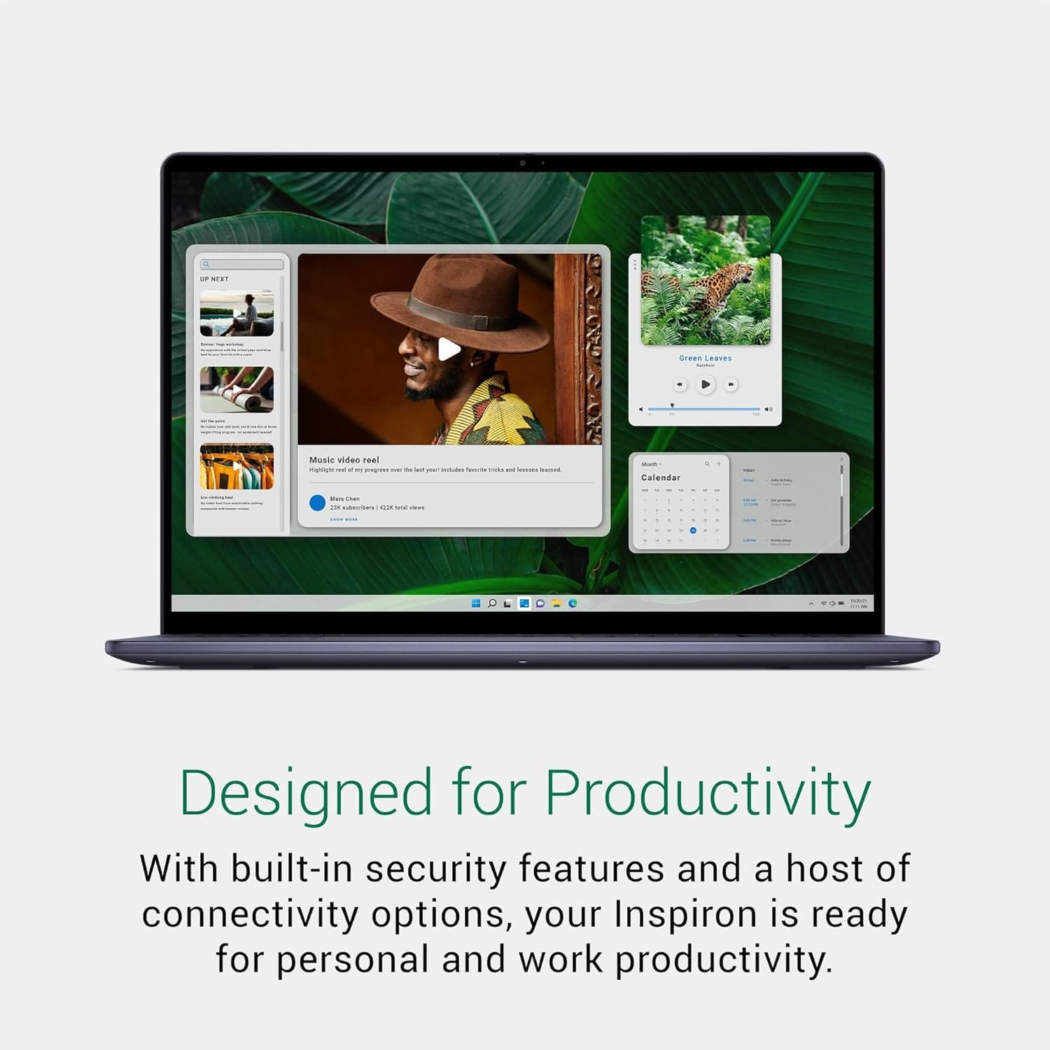 Design innovation: This Inspiron is designed with sustainable materials including post-consumer recycled plastics and post-industrial recycled aluminum , with an etched logo on the lid that reduces manufacturing waste and is a more durable design . Thoughtful material and design considerations help lower environmental impact.