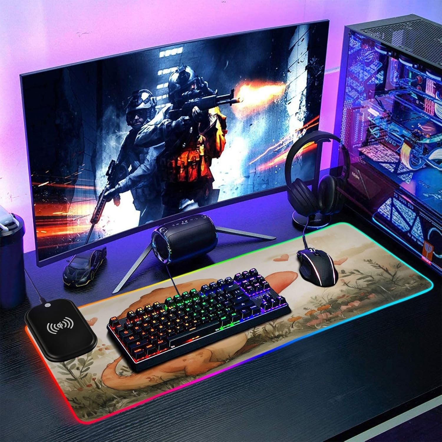Package Including: 1 x RGB mouse pad for gaming, 1 x Fast Wireless charger (1.5m USB + Type-C cable), 1 x Instruction. Two Szies led mousepad to choose – S: 31.5 x 11.8in and M: 35.4 x 15.7in. BTW, As long as the wireless charging function of cell phone, watch, mouse and other products, can be charged with our wireless charging box.