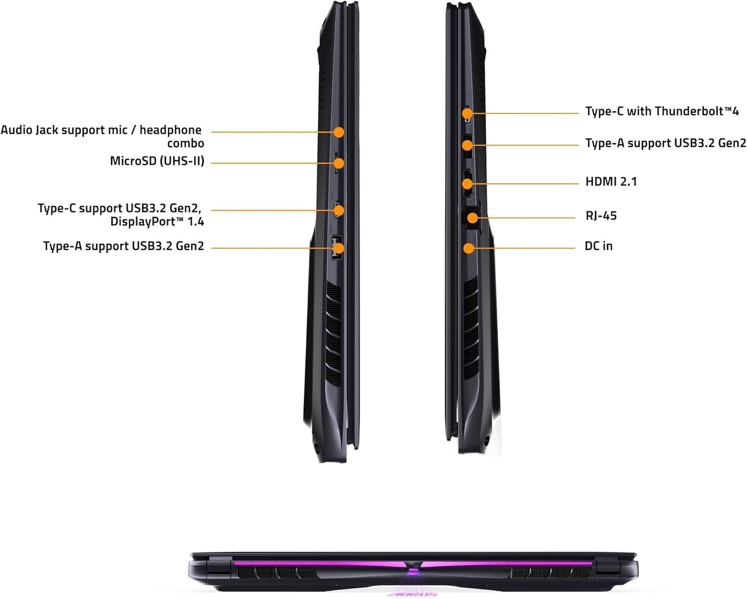 IO: 1x Thunderbolt 4 (Supports Power Delivery), 1x HDMI 2.1, 2x USB 3.2 Gen2 (Type-A), 1x RJ45, 1x Audio Combo Jack, 1x DC In