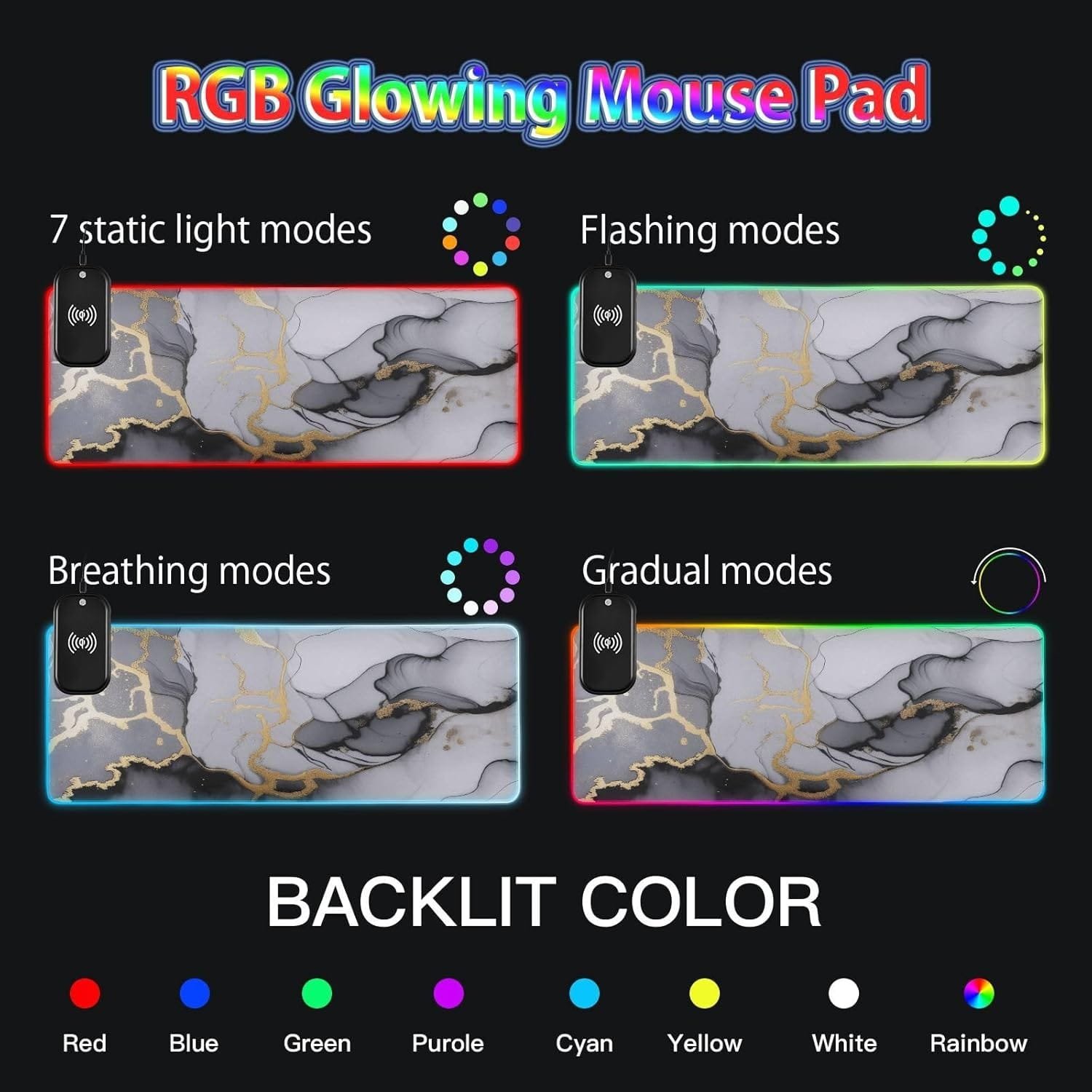 14 LED Lighting Modes: The real highlight of this RGB mouse pad is its 14 lighting modes effect settings. You can choose from different lighting modes, such as static color, breathing mode, and flashing mode. Additionally, you can adjust the brightness and saturation to perfectly match it with your computer system and room ambiance.
