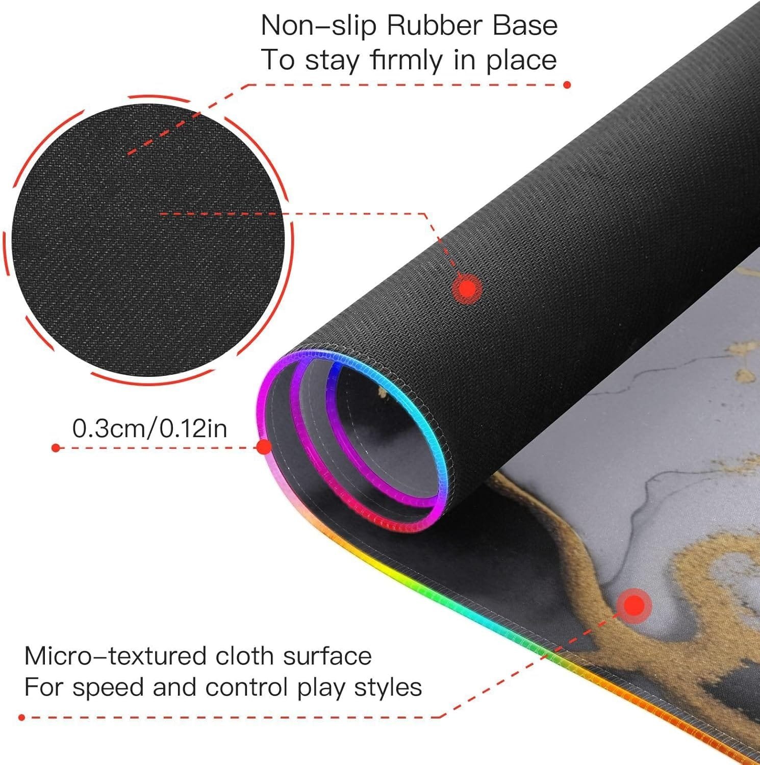 Gray Gold Black Marble Gaming Mouse Pad Led Mousepads RGB Backlit with 14 Lighting Modes, Non Slip Base Soft Computer Keyboard Mat for Gaming PC Laptop Desk, S