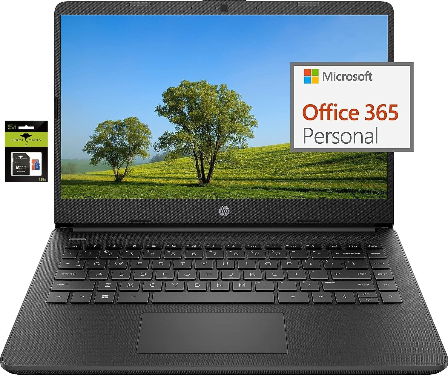HP 14″ Ultral Light Laptop for Students and Business, Intel Quad-Core N4120, 16GB RAM, 192GB Storage(64GB eMMC+128GB Ghost Manta SD Card), 1 Year Office 365, Webcam, HDMI, WiFi, USB-A&C, Win 11