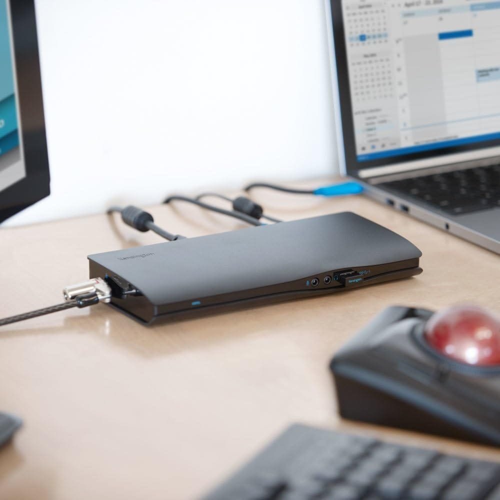 Let the leader in professional desktop performance make your transition to USB-C connectivity as smooth as possible with the SD4600 USB-C universal dock with power Delivery. The dock works with Windows, Mac OS and Chrome OS devices, allowing you to plug in a single cable that delivers 4K video, charges your laptop and offers high-speed data transfer. Plus, you get instant access to all your peripheral desktop accessories. Zero Footprint Mounting makes it ideal for workstations with limited space (mount sold separately) and it’s Thunderbolt 3 compatible.