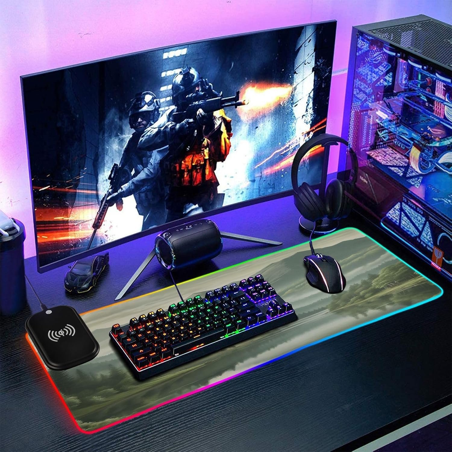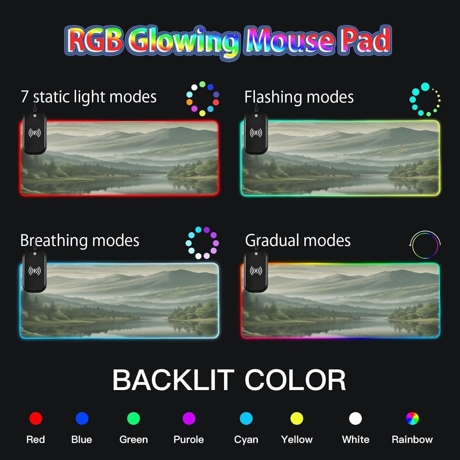 Meadow Woods and Mountain Gaming Mouse Pad Led Mousepads RGB Backlit with 14 Lighting Modes, Non Slip Base Soft Computer Keyboard Mat for Gaming PC Laptop Desk, S