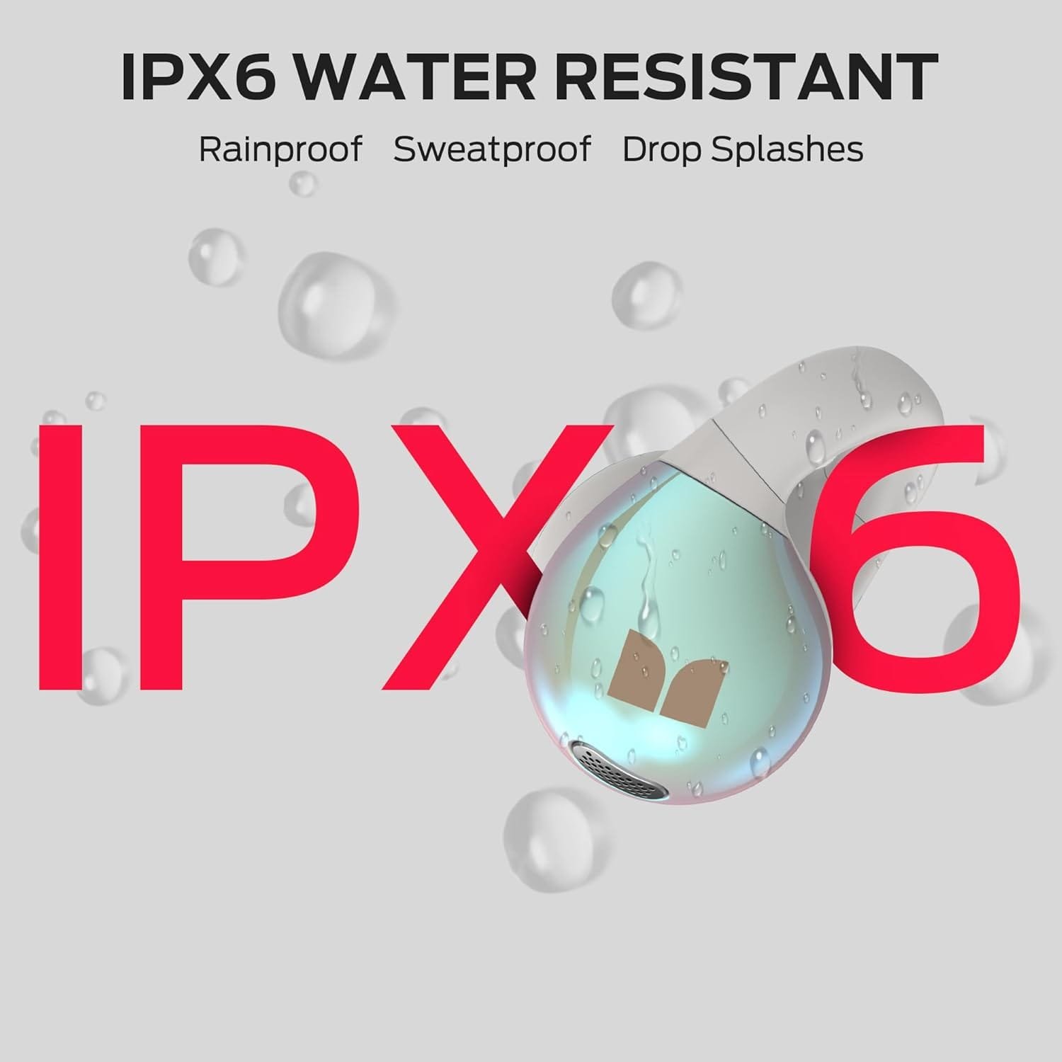【IPX6 Water Resistant For Any Workouts】Designed for active lifestyles, it prevents water and sweat from penetrating and can be used in any harsh environment. Monster open earbuds are the perfect sports partner for running, cycling, mountaineering, and sports and fitness enthusiasts, without worrying about sweating profusely.