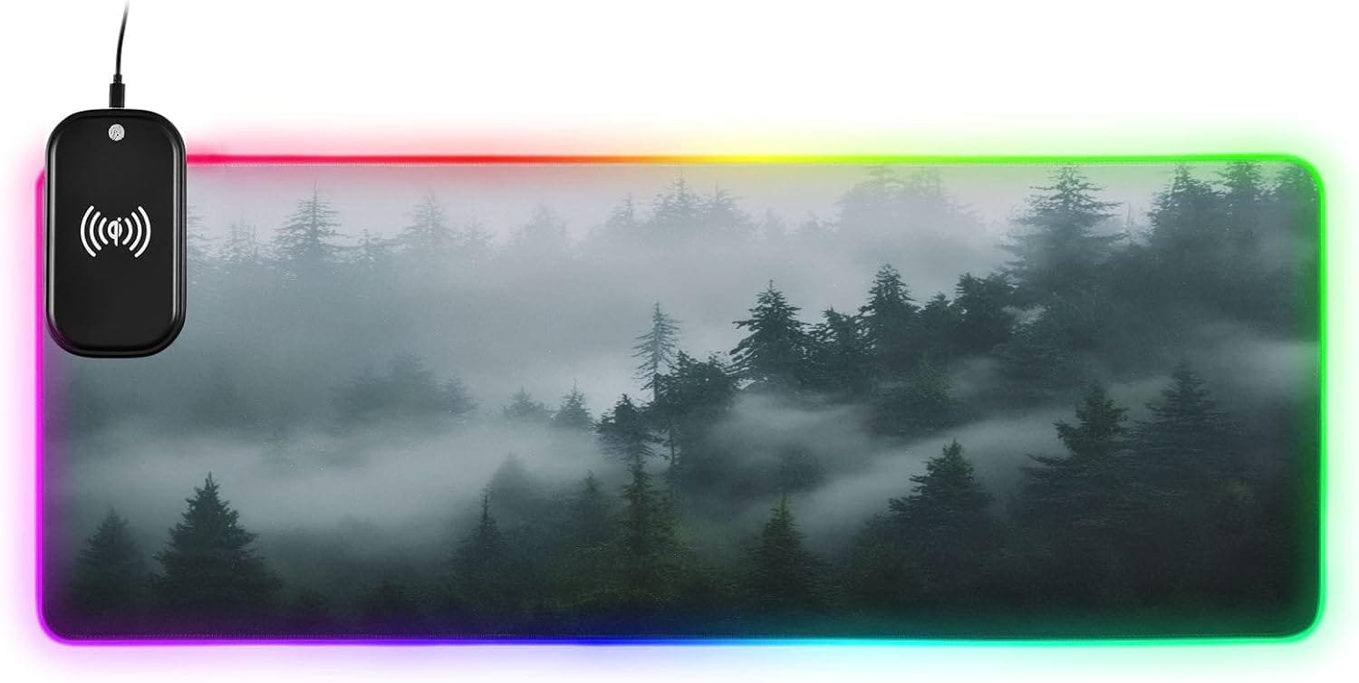 Natural Misty Forest Gaming Mouse Pad Led Mousepads RGB Backlit with 14 Lighting Modes, Non Slip Base Soft Computer Keyboard Mat for Gaming PC Laptop Desk, M