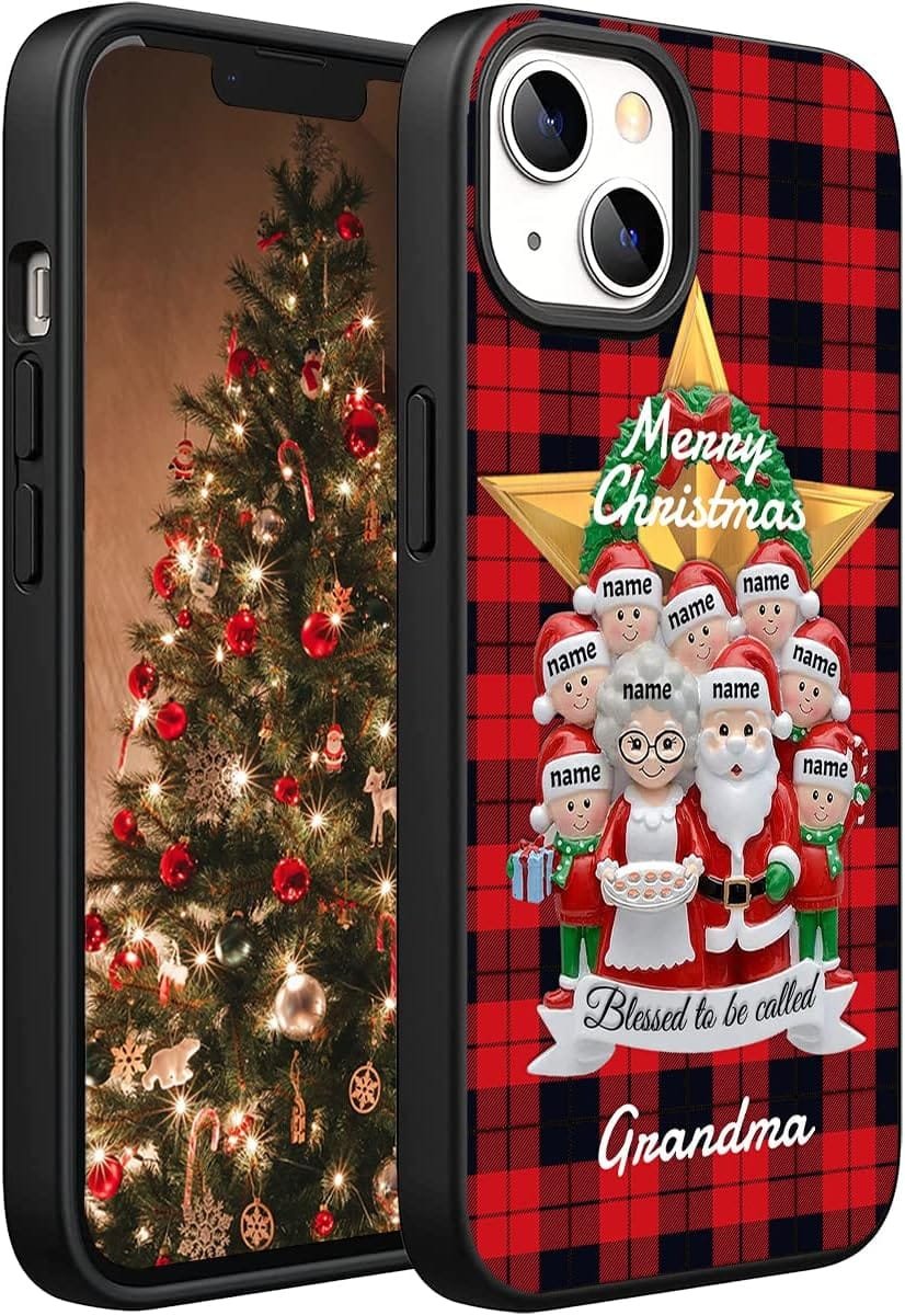 Personalized Grandma Blessed to Be Called Grandama vs Xmas Santa Phone Case for iPhone 14 11 12 13 Xs Samsung S22 S21 S20 A03S A53 with Grandkid’s Name, Xmas Nana Gift