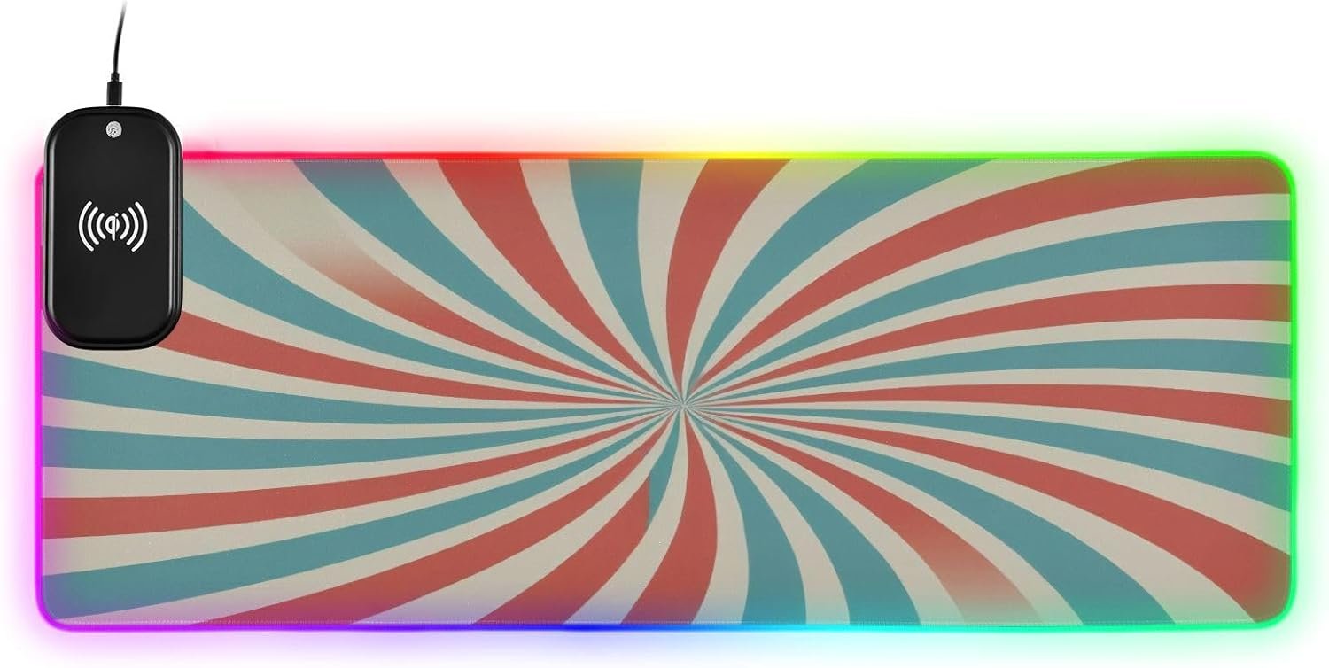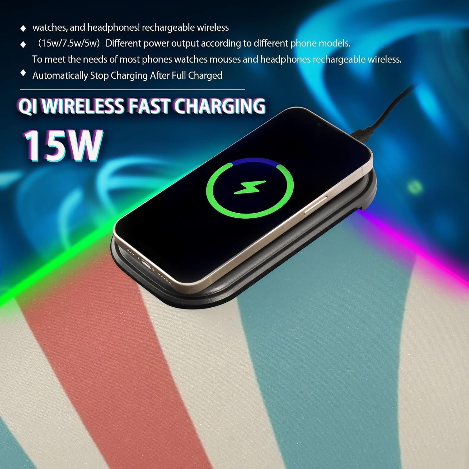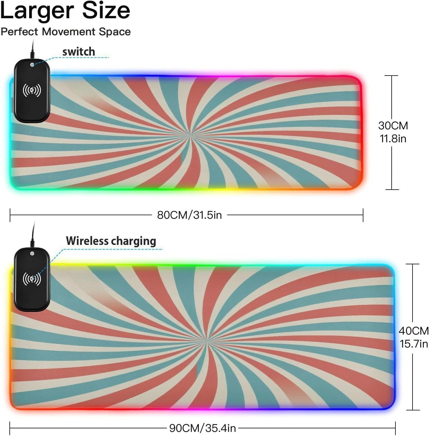 Package Including: 1 x RGB mouse pad for gaming, 1 x Fast Wireless charger (1.5m USB + Type-C cable), 1 x Instruction. Two Szies led mousepad to choose – S: 31.5 x 11.8in and M: 35.4 x 15.7in. BTW, As long as the wireless charging function of cell phone, watch, mouse and other products, can be charged with our wireless charging box.