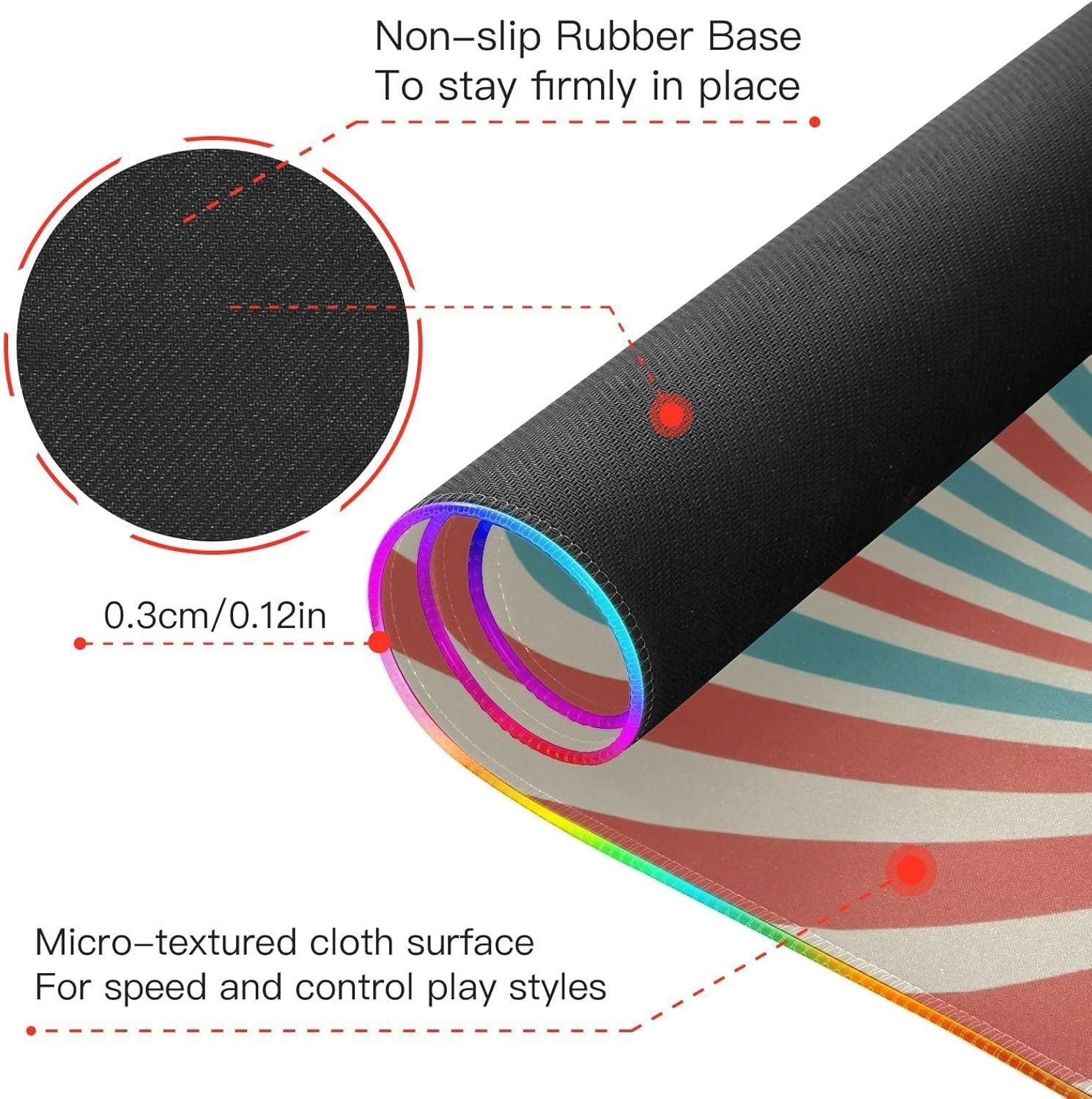 Retro Sunlight Stripes Gaming Mouse Pad Led Mousepads RGB Backlit with 14 Lighting Modes, Non Slip Base Soft Computer Keyboard Mat for Gaming PC Laptop Desk, S