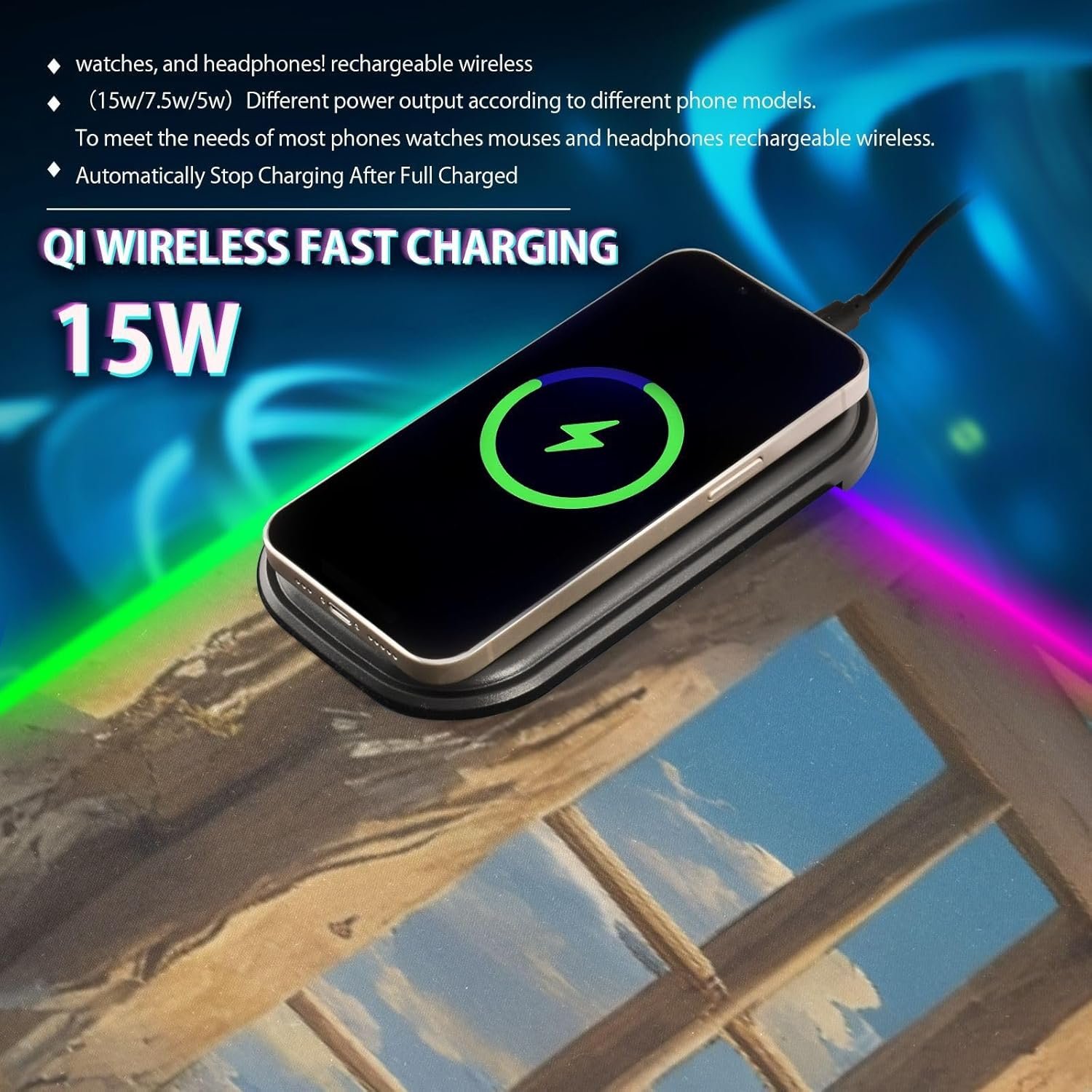 Package Including: 1 x RGB mouse pad for gaming, 1 x Fast Wireless charger (1.5m USB + Type-C cable), 1 x Instruction. Two Szies led mousepad to choose – S: 31.5 x 11.8in and M: 35.4 x 15.7in. BTW, As long as the wireless charging function of cell phone, watch, mouse and other products, can be charged with our wireless charging box.