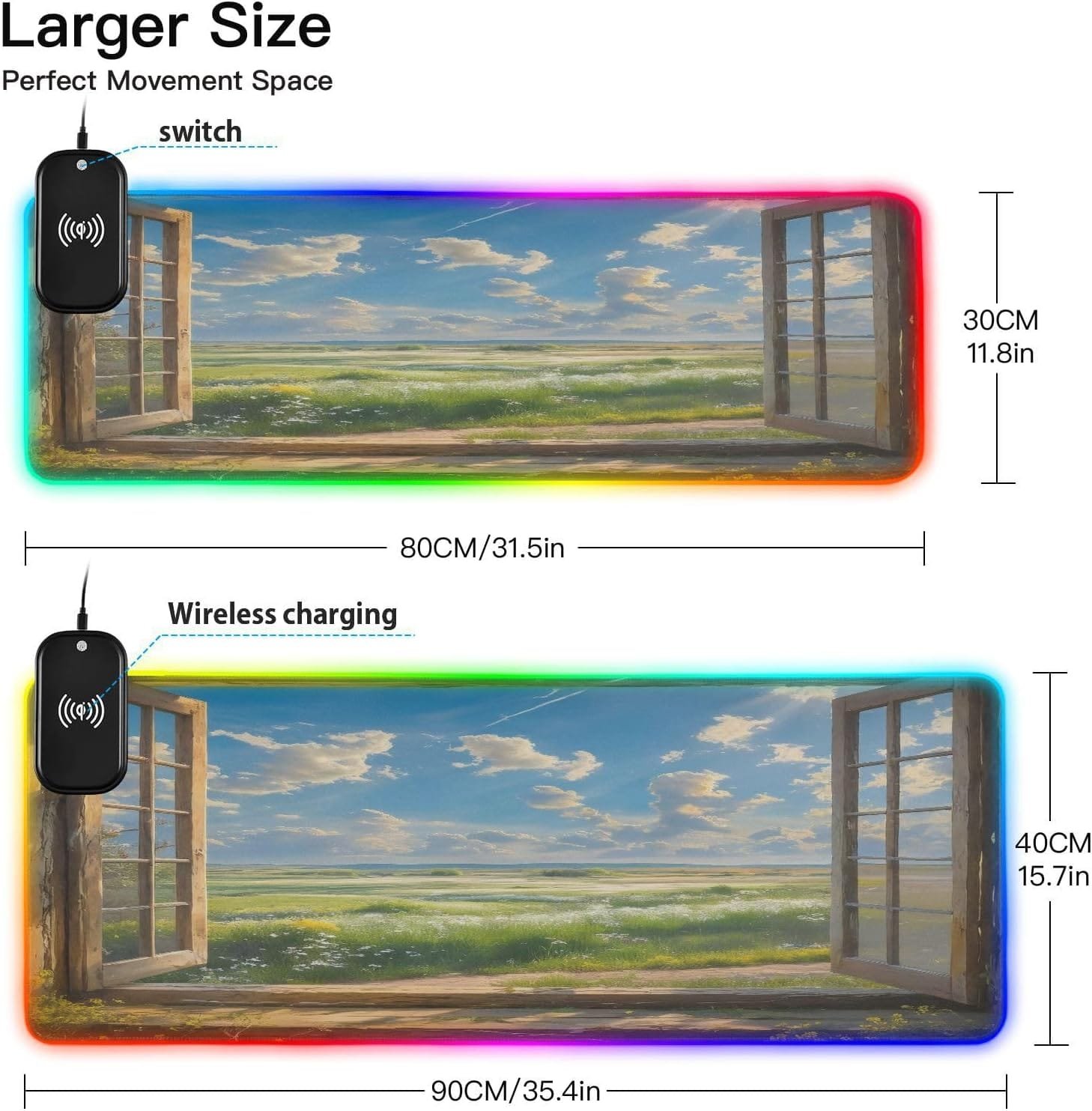 Window Cloud Scenery Gaming Mouse Pad Led Mousepads RGB Backlit with 14 Lighting Modes, Non Slip Base Soft Computer Keyboard Mat for Gaming PC Laptop Desk, M