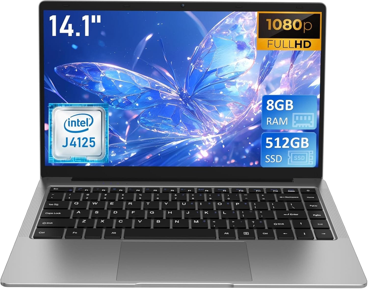 Windows Laptop Computer, 8GB DDR4 RAM, 512GB M.2 SATA SSD, 2-2.7 GHz Intel Celeron J4125 Processor, 14.1″ FHD IPS LCD Screen, Mini HDMI, USB-A x2, MicroSD, Windows 11 Pro Traditional Laptop Computers