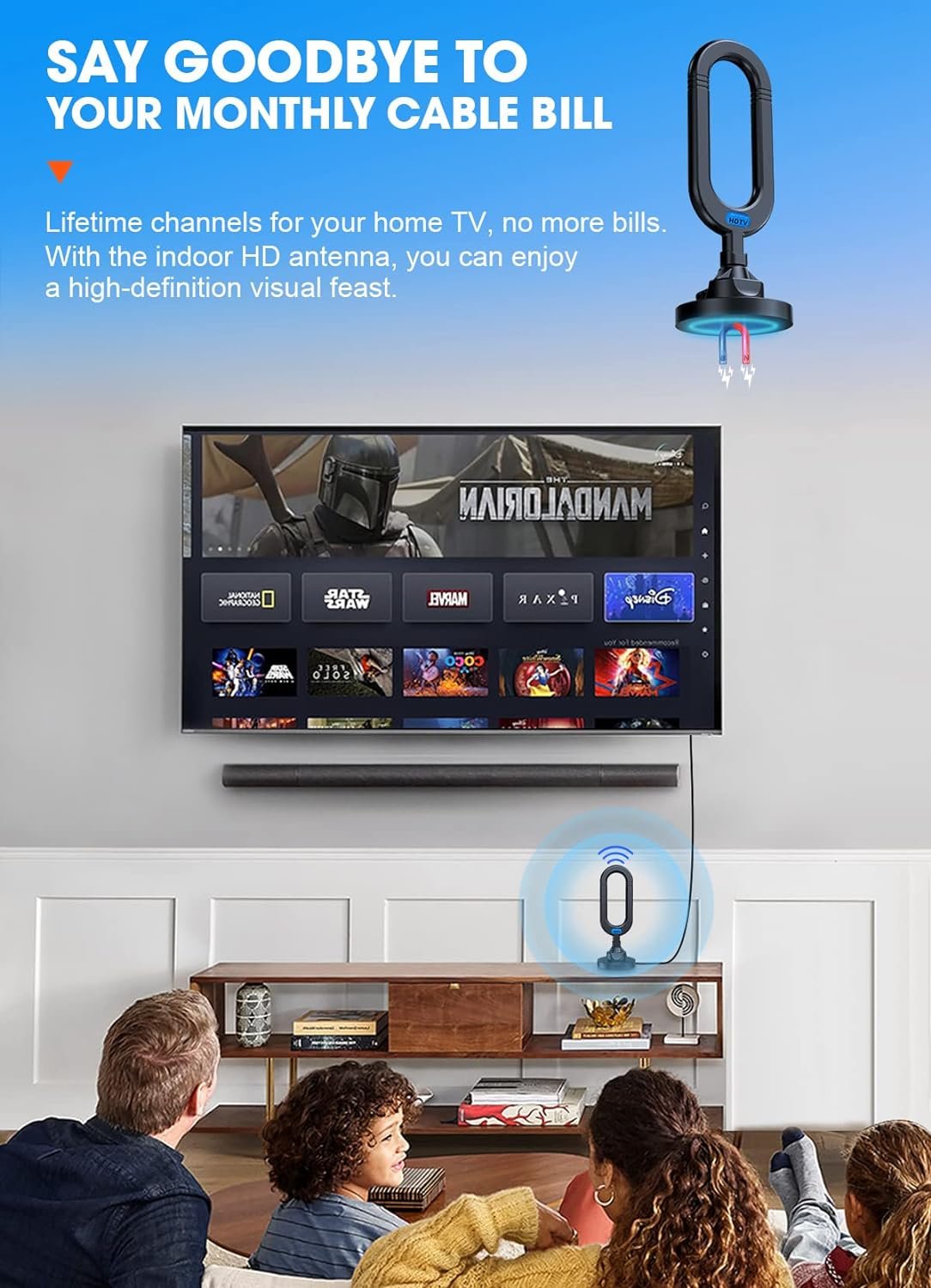 WUMINGLU TV Antenna for Smart TV Indoor 2025 4K Digital HDTV Up to 380 Miles Long Range Local Channels Indoor Outdoor