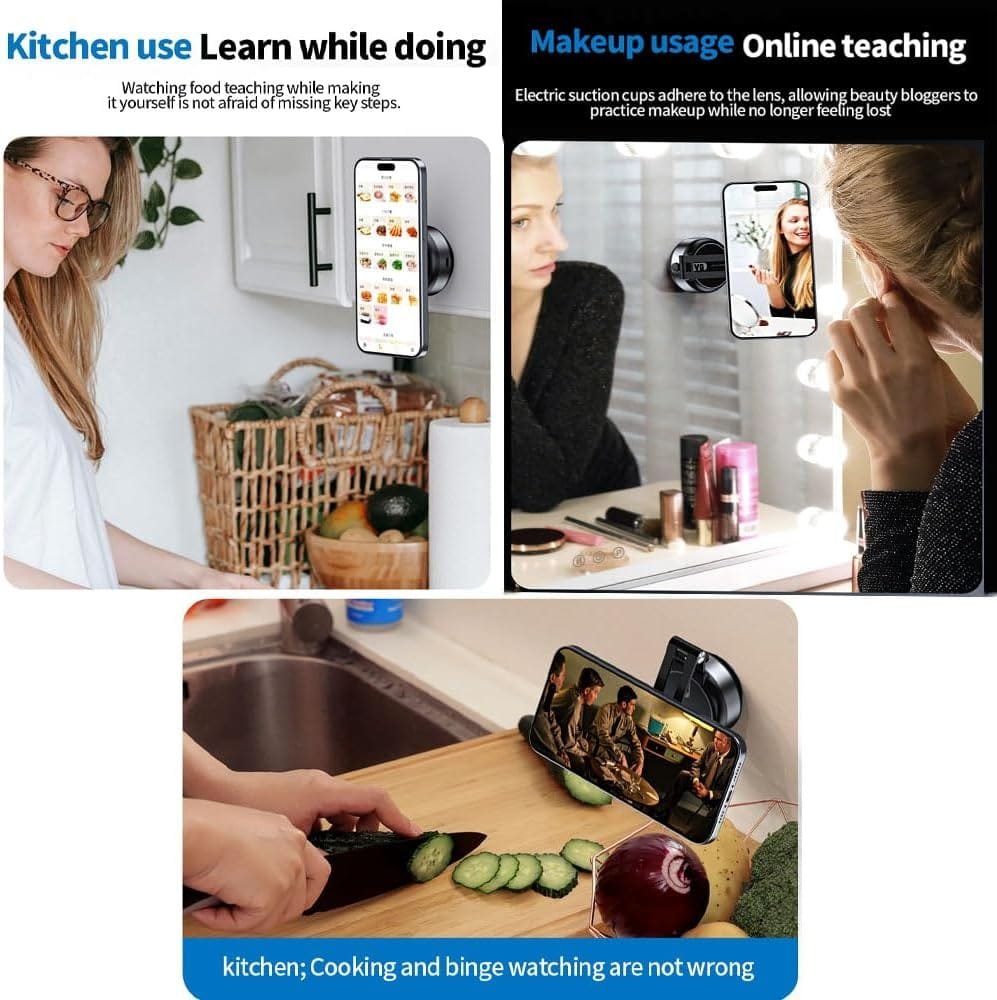 【Easy Installation】: The Magnetic Suction Cup Holder features a mini design for easy, tool-free installation and removal, with adjustable suction cups that adhere to various smooth surfaces like windshields and dashboards.